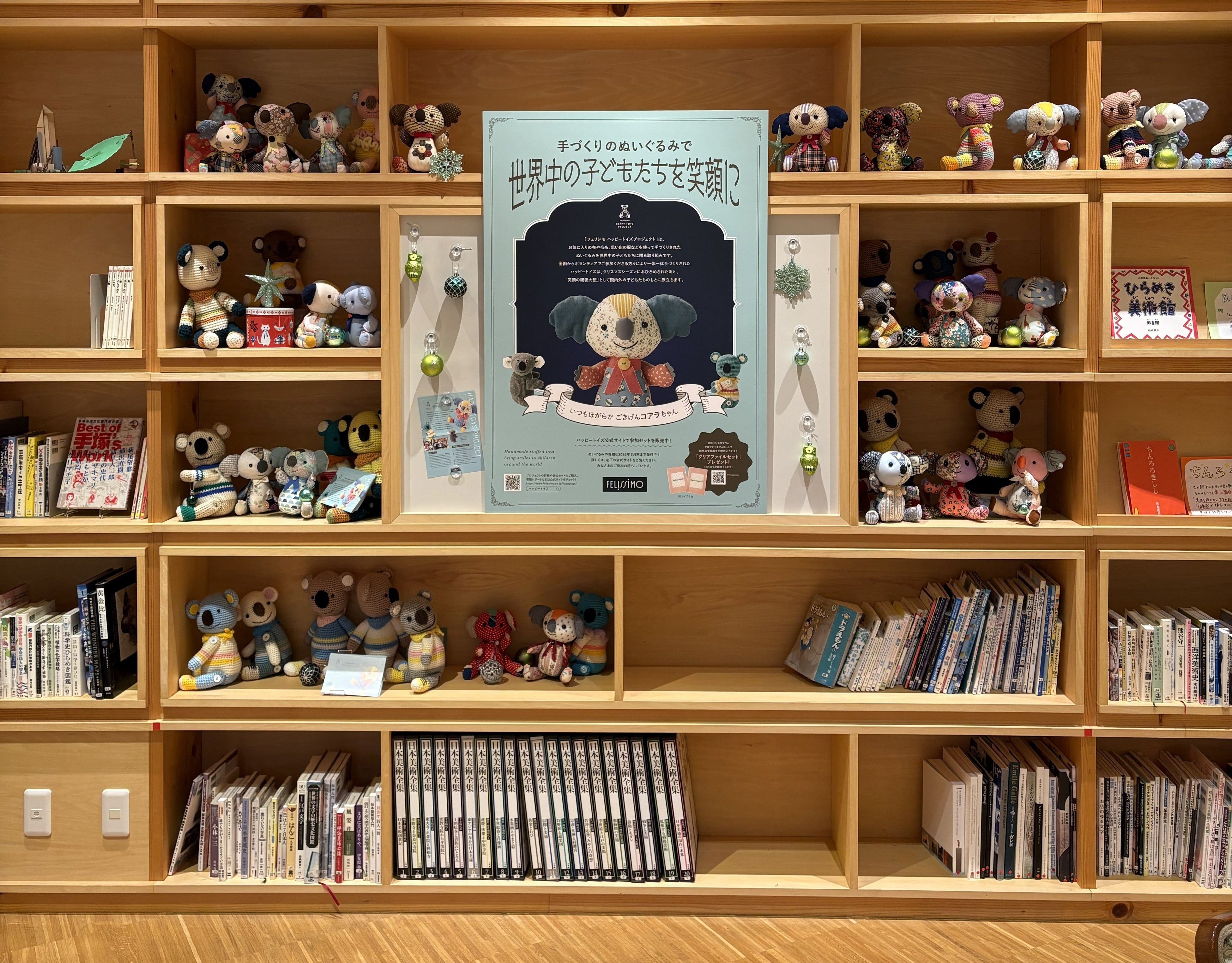 会期中、参加セットを使って製作した、「いつもほがらか ごきげんコアラちゃん」の寄贈を、エキュート日暮里で受け付けます。お預かりしたぬいぐるみはエキュートスタッフがその場で展示します。