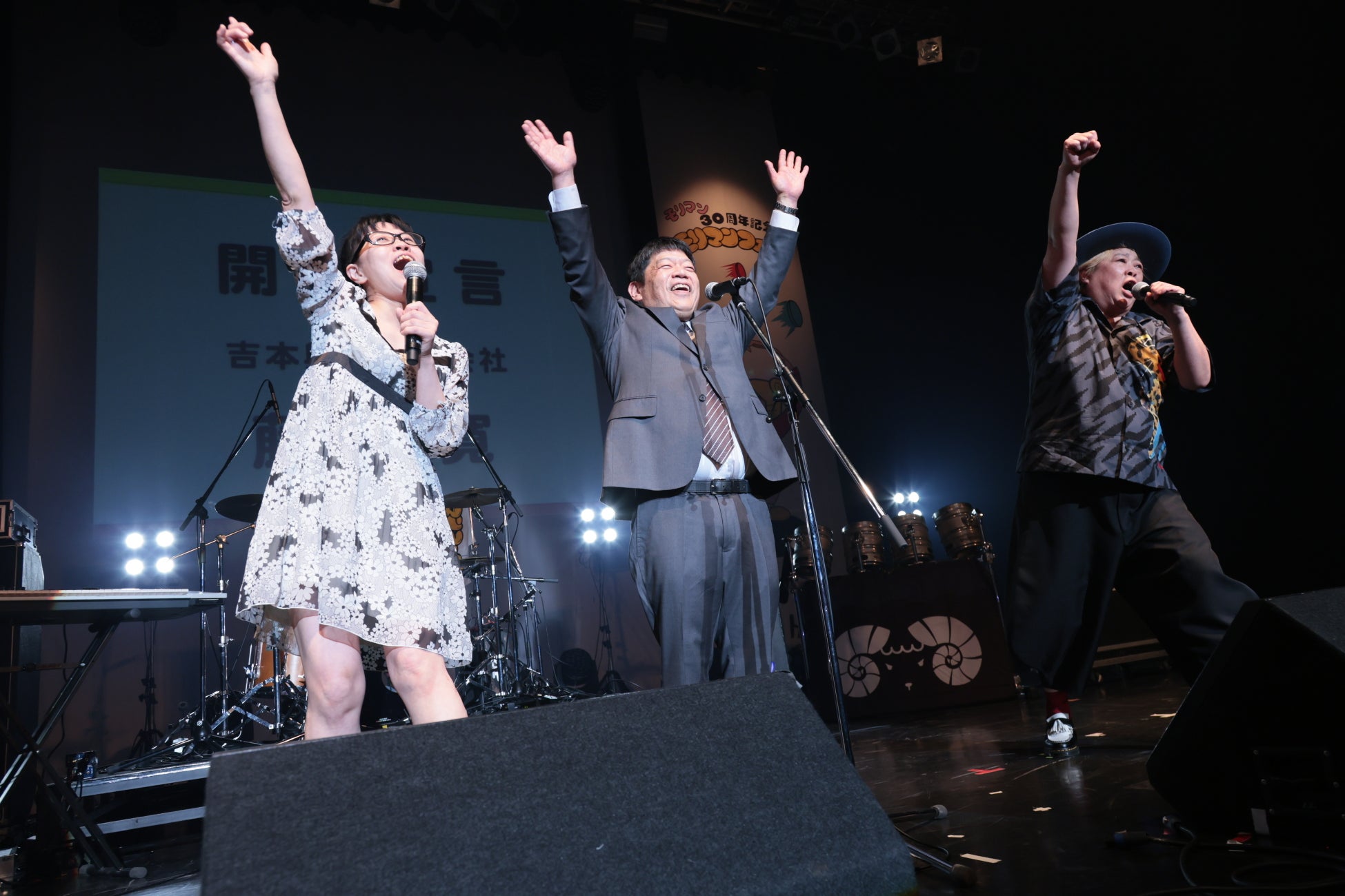 吉本興業株式会社副社長・藤原寛による開会宣言から幕を開けた本イベントでは、泉谷しげる、MAX、黒猫同盟(上田ケンジ、小泉今日子)、そして大トリの怒髪天といった豪華アーティスト陣が圧巻の音楽ステージを披露。泉谷しげる氏の力強い歌声にモリ夫が感涙する場面や、小泉今日子氏が「夜明けのMEW」をサプライズ歌唱する一幕も、会場を感動で包み込みました。