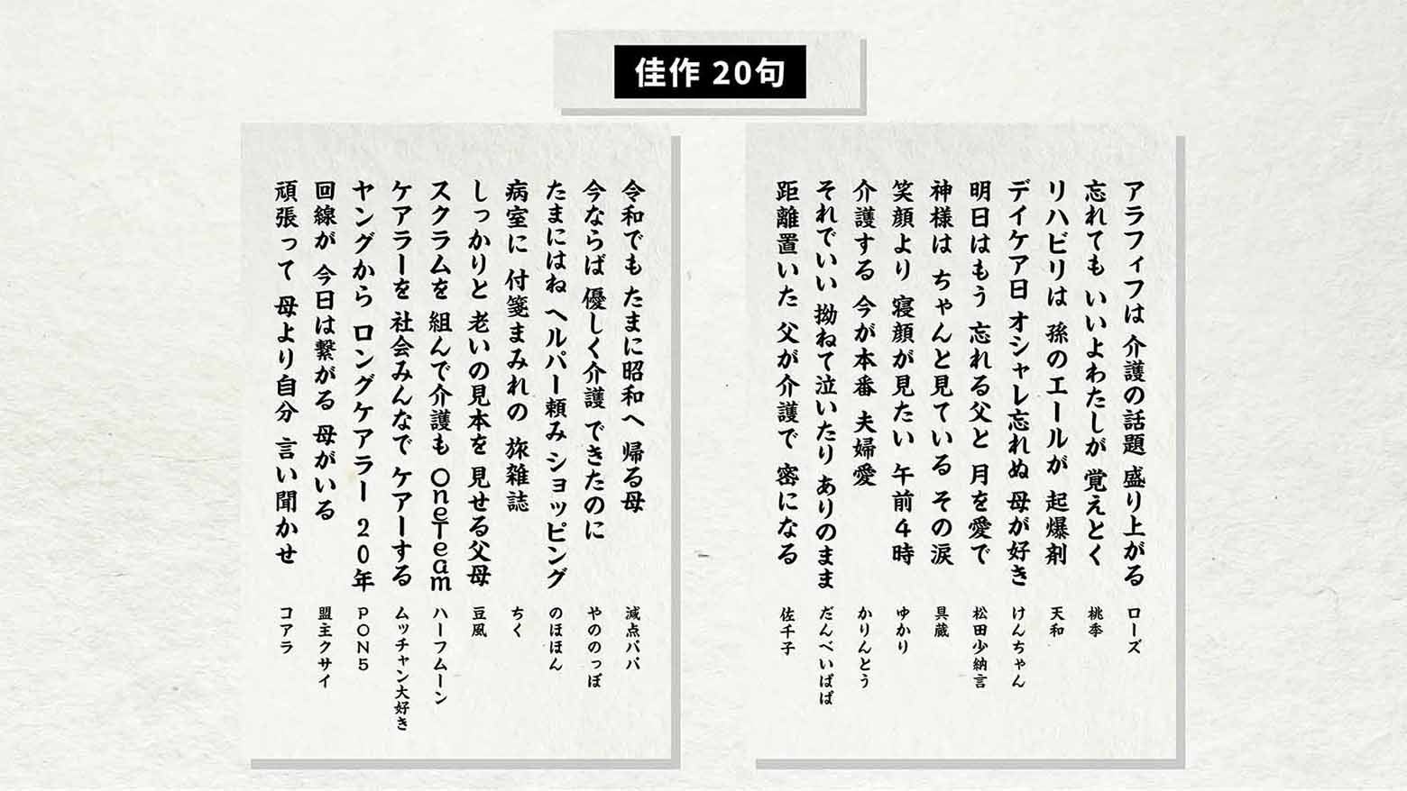 また、選外とするには惜しい作品も多く寄せられたことから、佳作として20句を選出しています。
