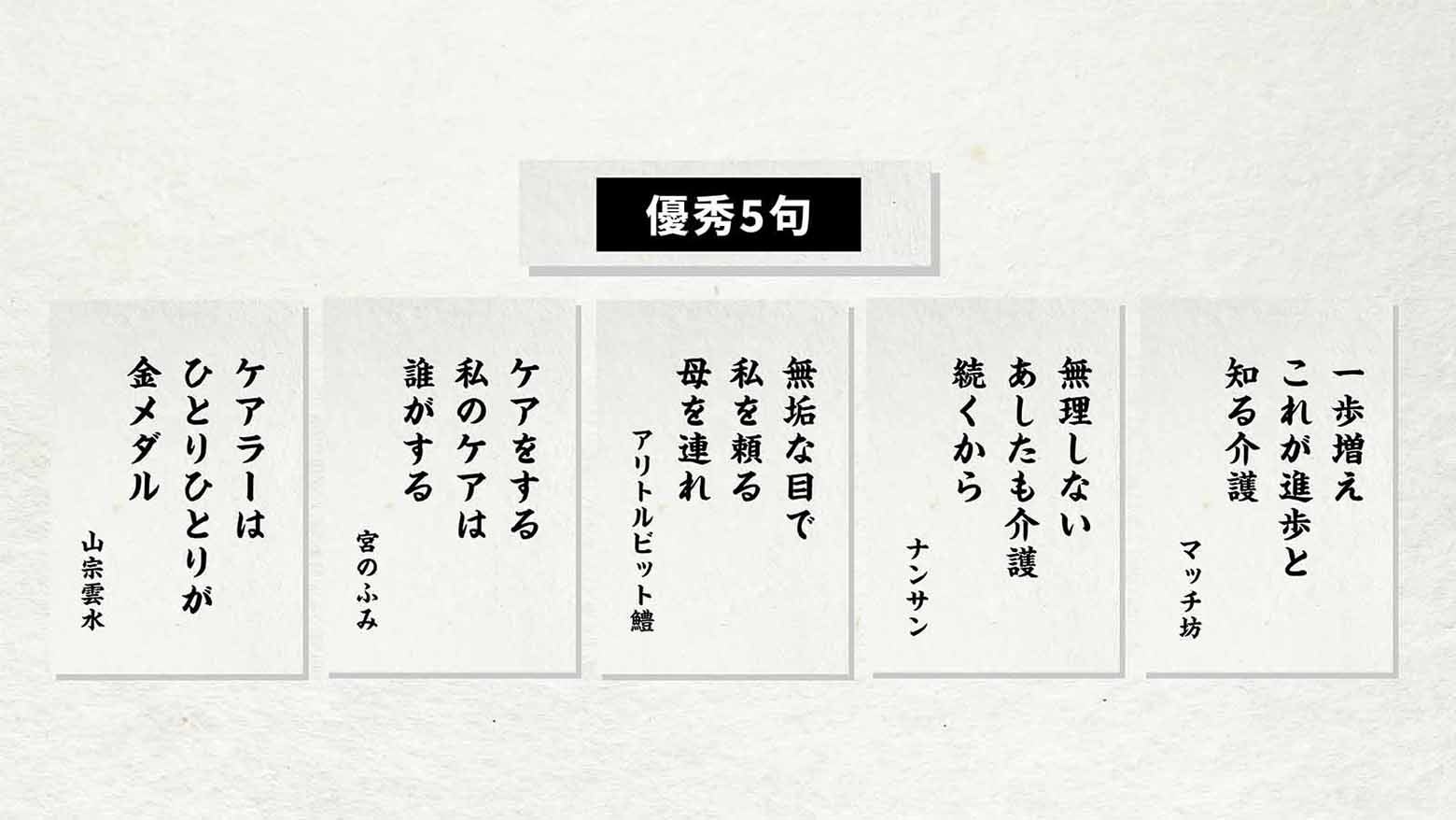 日々の介護、シニアケアの苦労を絡めた作品や、家族の絆を折り込んだ作品など、多くの素晴らしい句が寄せられました。MySCUEは、「シニアケアの負担と不安を軽くする」ことを目的としており、ケアラー川柳を通して日々のシニアケアに関する出来事を分かち合うきっかけを提供できたら幸いです。たくさんのご応募、誠にありがとうございました。