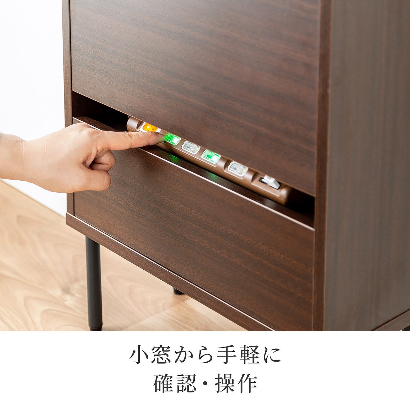 正面の隙間から、スイッチ付き電源タップのON/OFFを簡単に行うことができます。