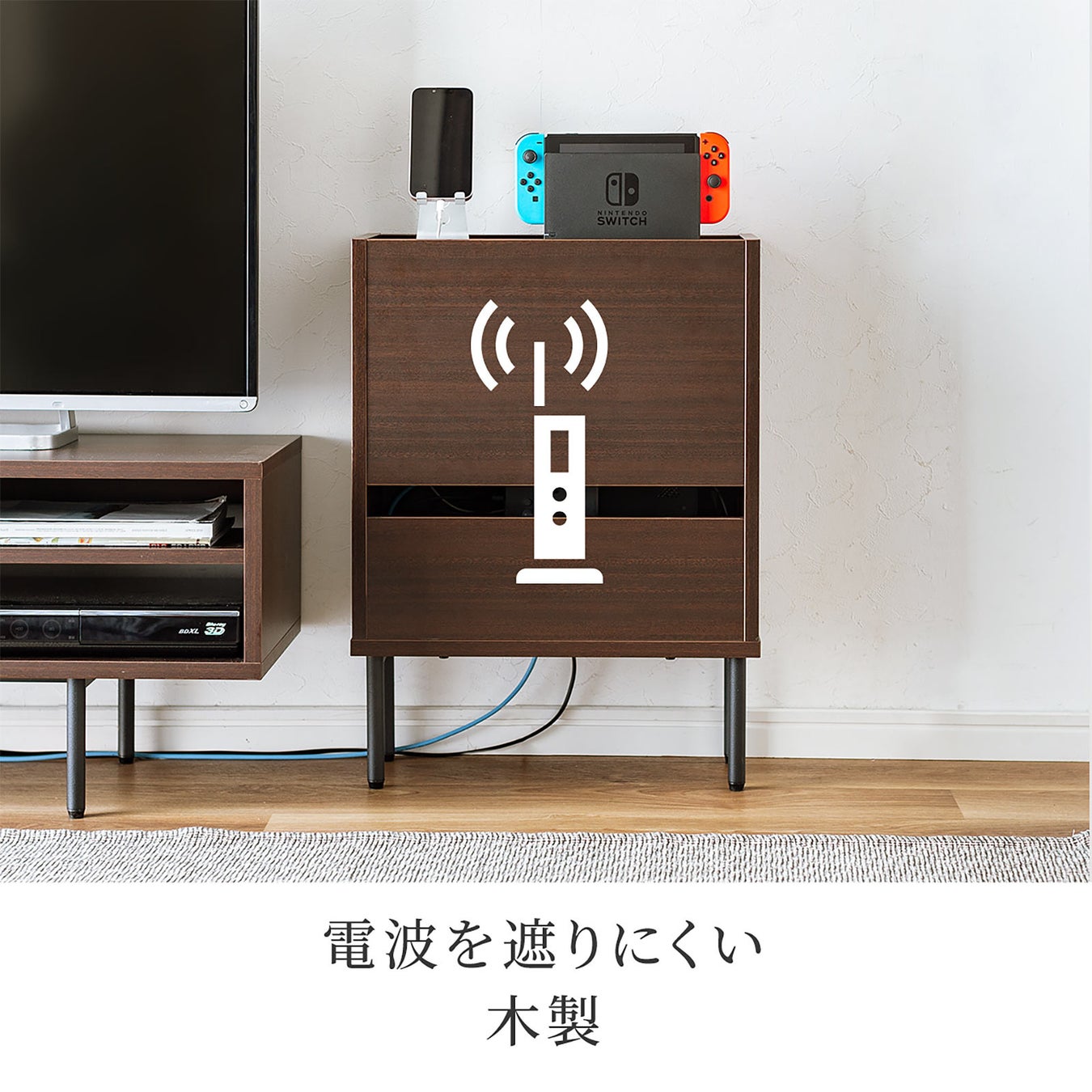 本体はすべて木製なので無線ルーターなどのWi-Fi機器を収納しても電波障害が少なく、快適にお使いいただけます。