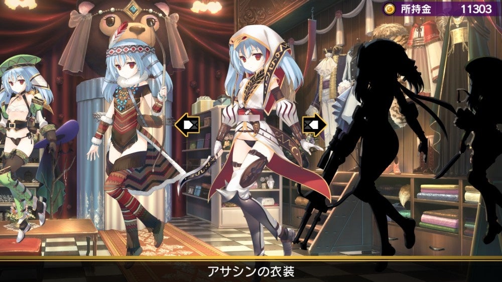 そして最後に紹介したいのが「着替え屋」だ。こちらもゲームを進めていくと開放される施設で、キャラクターのコスチュームを購入することで、クラスに依存することなく自由な衣装のキャラクターを楽しむことができる。