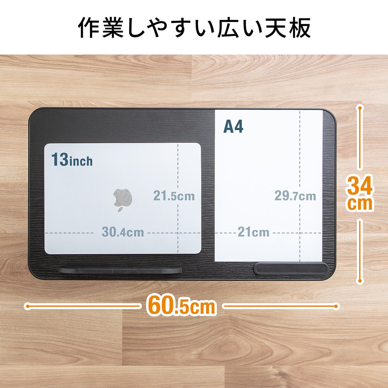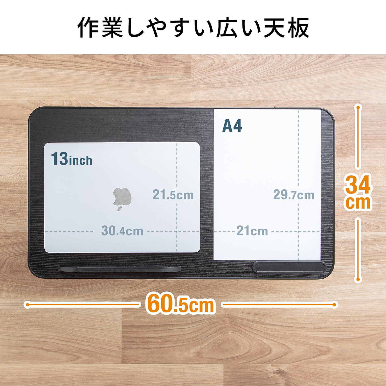 天板は最大15.6インチ程度のノートパソコンを置くことができる広い天板を採用しています。