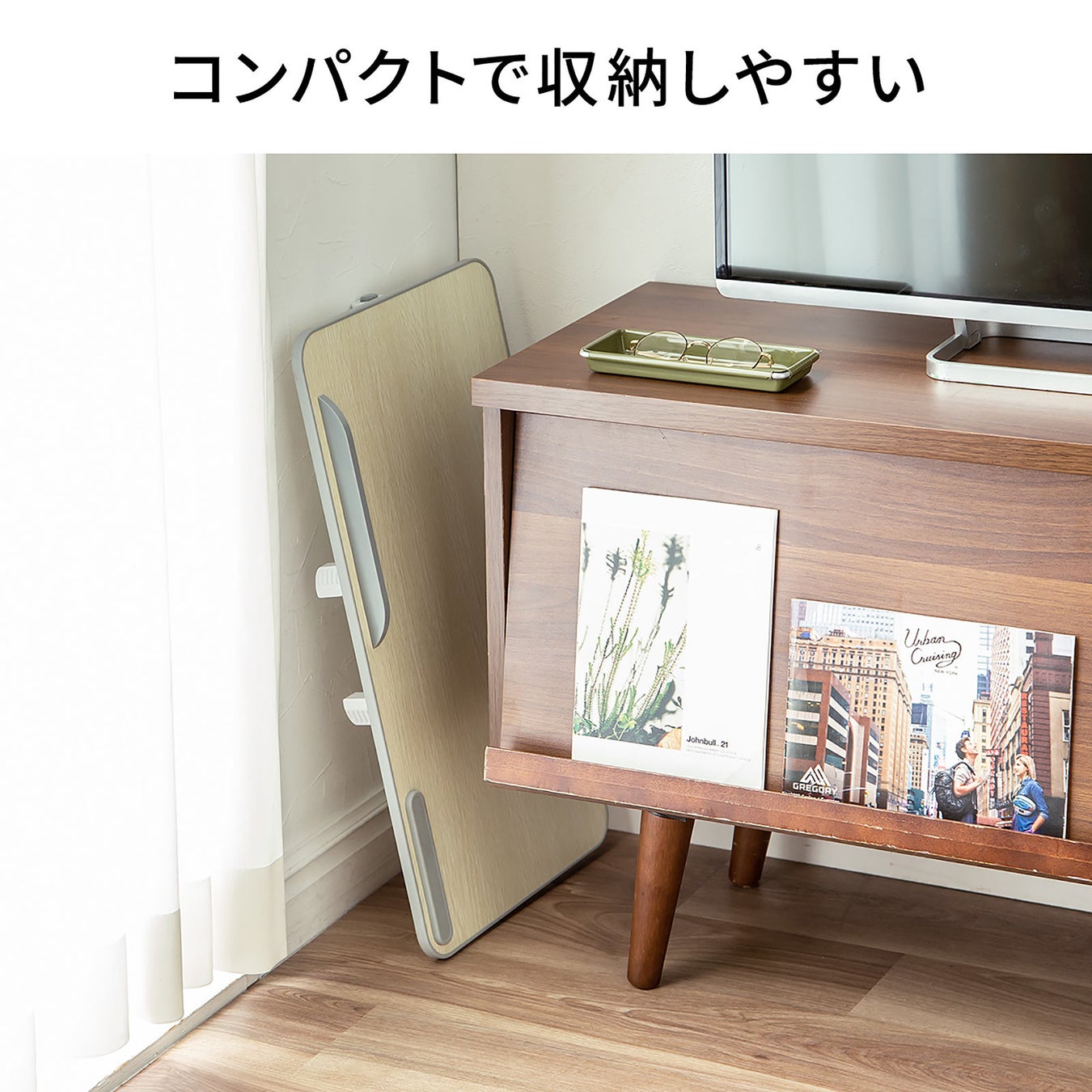 折りたたむとスリムになり、ソファ下などに収納できます。
