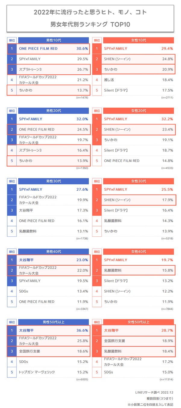 ■若年層は「SPY×FAMILY」「ONE PIECE FILM RED」「SHIEN」などがランクイン