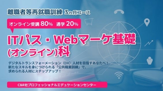 株式会社クリーク・アンド・リバー社(C&R社)は、東京都から委託された令和7年度離職者等再就職訓練において、「ITパス・Webマーケ基礎(オンライン)科」(8月開講)の受講生を募集します。