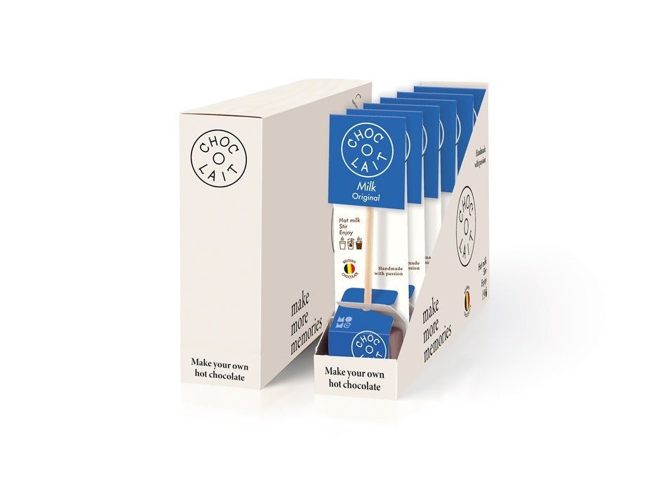 2004年、ベルギー産の高級チョコレートをスティック状にして、ホットミルクに溶かし、“美味しいホットココアを飲もう”というアイデアが生まれました。本格ベルギーチョコレートを使い簡単にホットチョコレートを作ることができ、クルクルと自分自身で溶かしていく遊び心も加えた商品です。