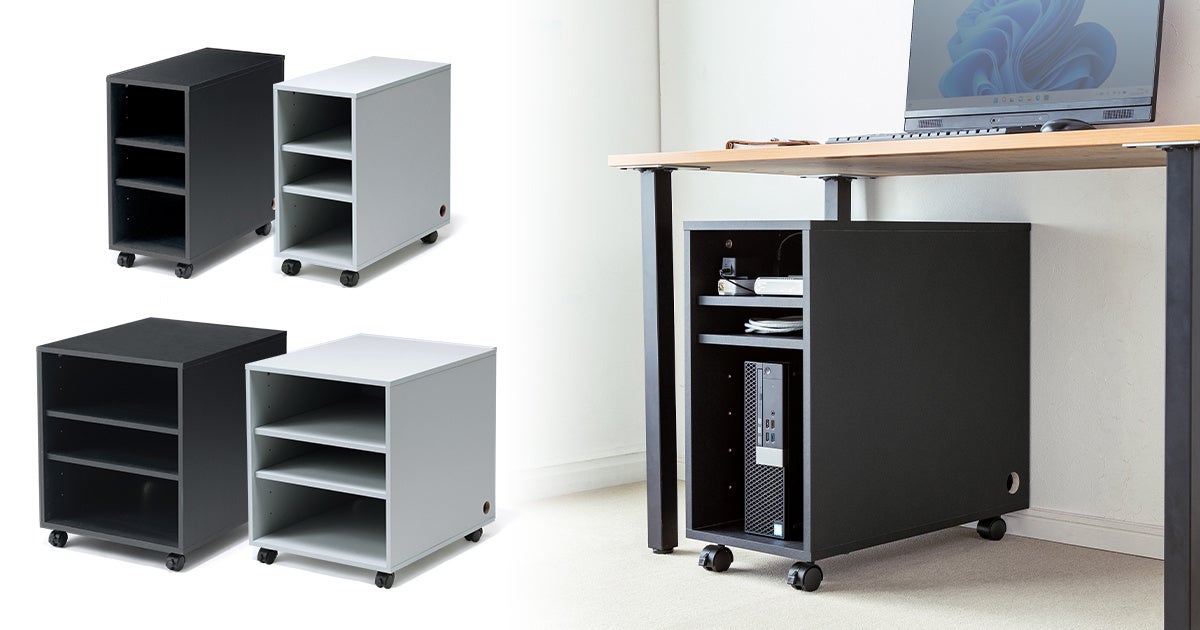 オフィスのデスク下や横に設置できる木製の機器収納ボックスを発売
