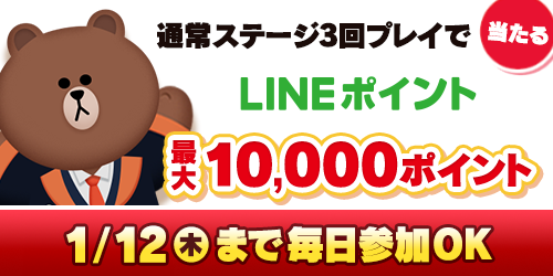 - ステージプレイで最大10,000ポイントを含むLINEポイントが合計10,000名様に当たるキャンペーン!