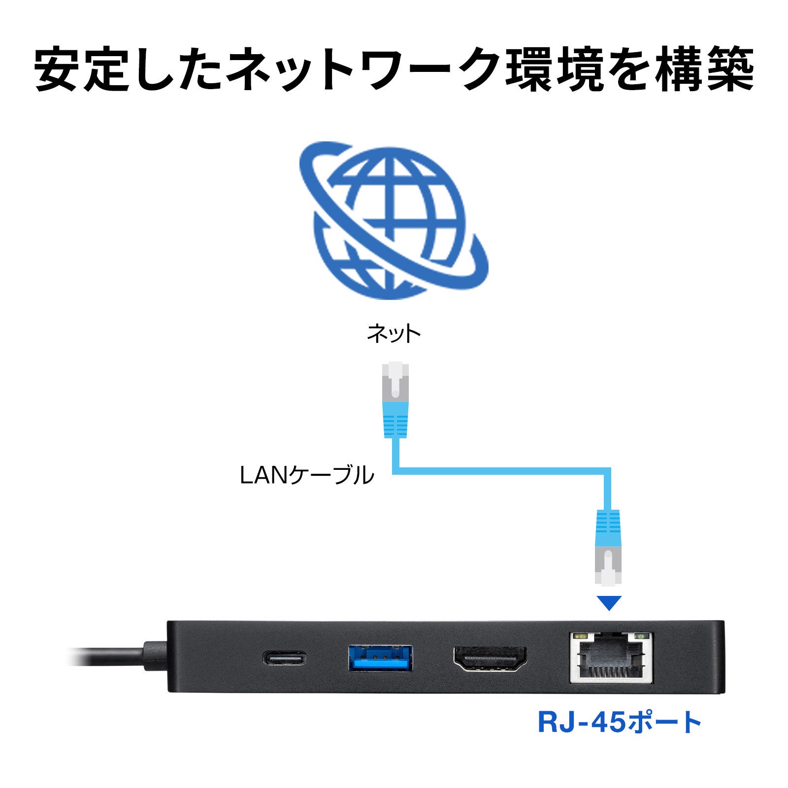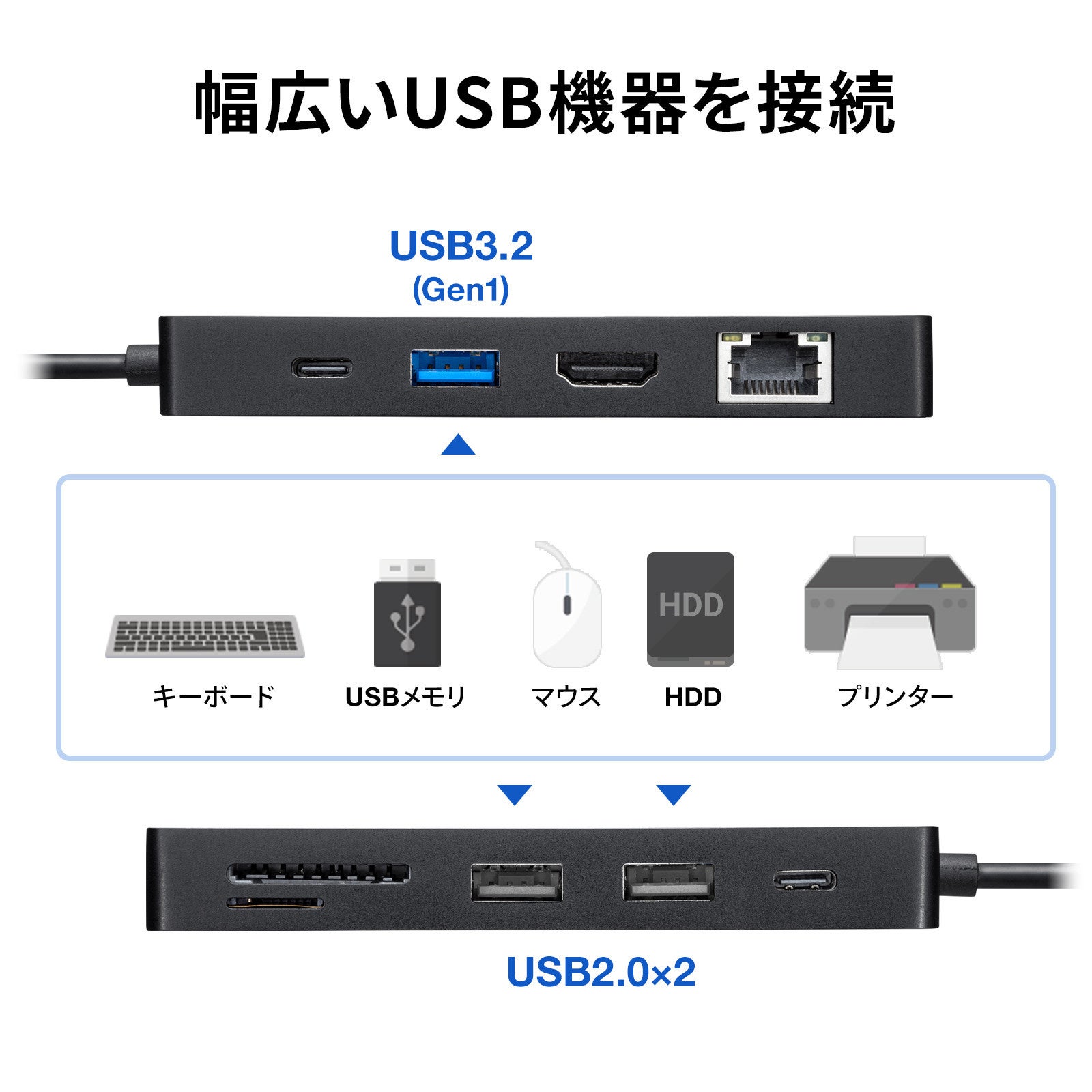 Type-Cケーブル1本でHDMIディスプレイ、USB機器、有線LAN、microSD・SDカードの拡張接続ができます。外出や会議などの移動時にはType-Cケーブル1本を抜くだけでノートパソコンをサッと持ち運べます。