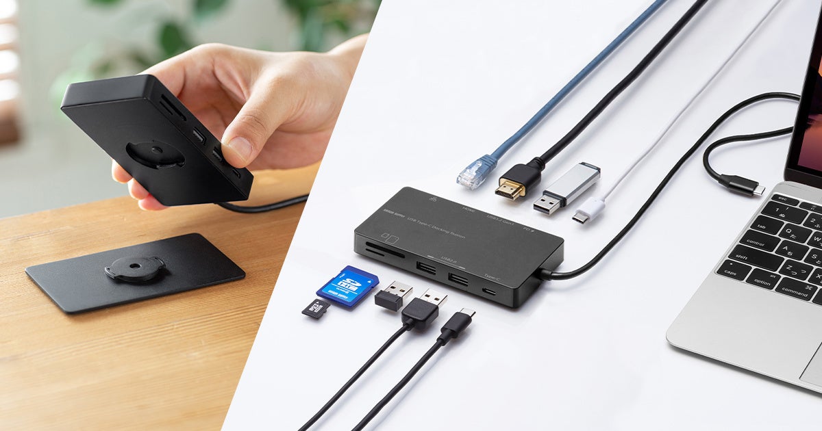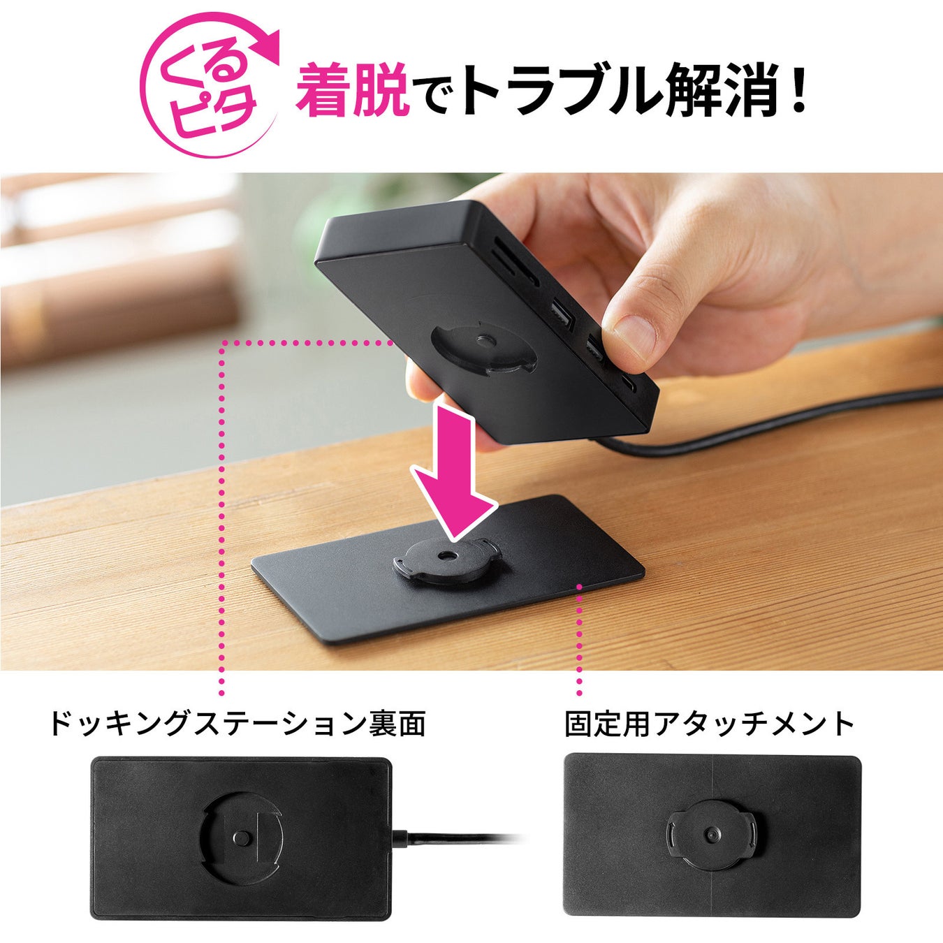 アタッチメント付きで机に固定・取り外しが簡単にできるドッキングステーションを発売