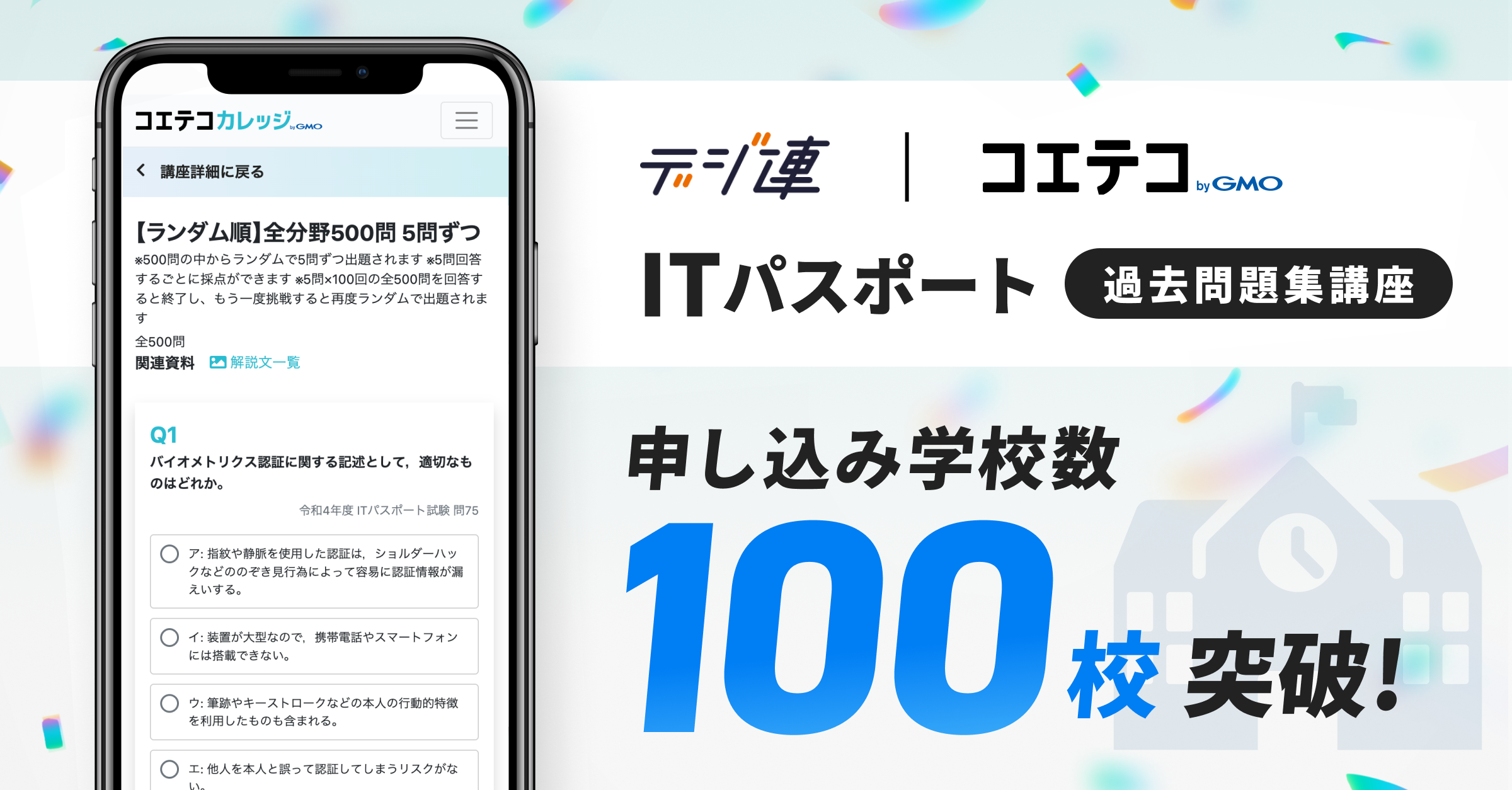 「コエテコ byGMO」が無償提供する高校向けITパスポート過去問題集講座の申し込み学校数が100校を突破!【GMOメディア】