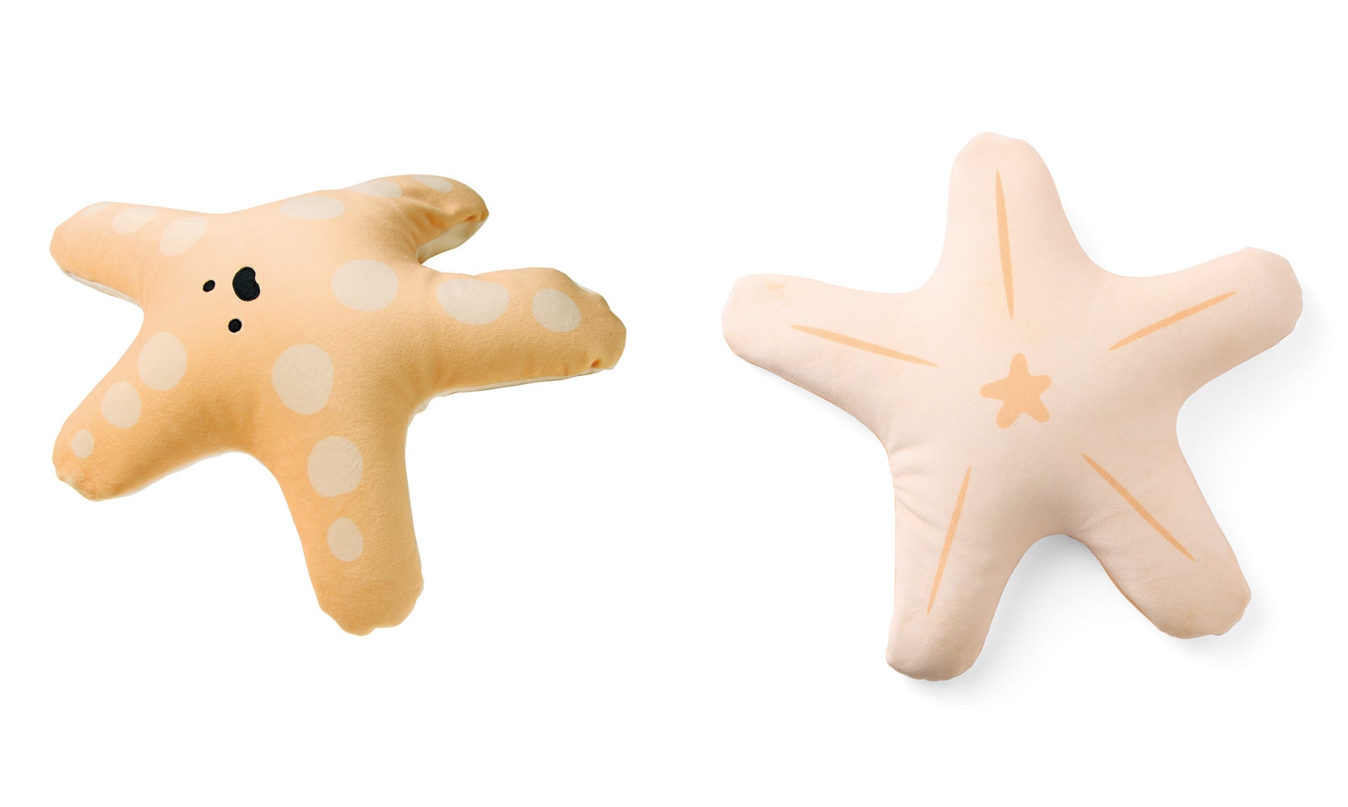 水族館の水槽の中にいるヒトデが、ダラダラしている人にように見えるという発想から生まれたヒトデモチーフのクッションです。くたっとした怠惰な姿に癒やされます。なんともいえない表情も◎。お部屋に置くだけで、絶妙な無気力感が漂います。