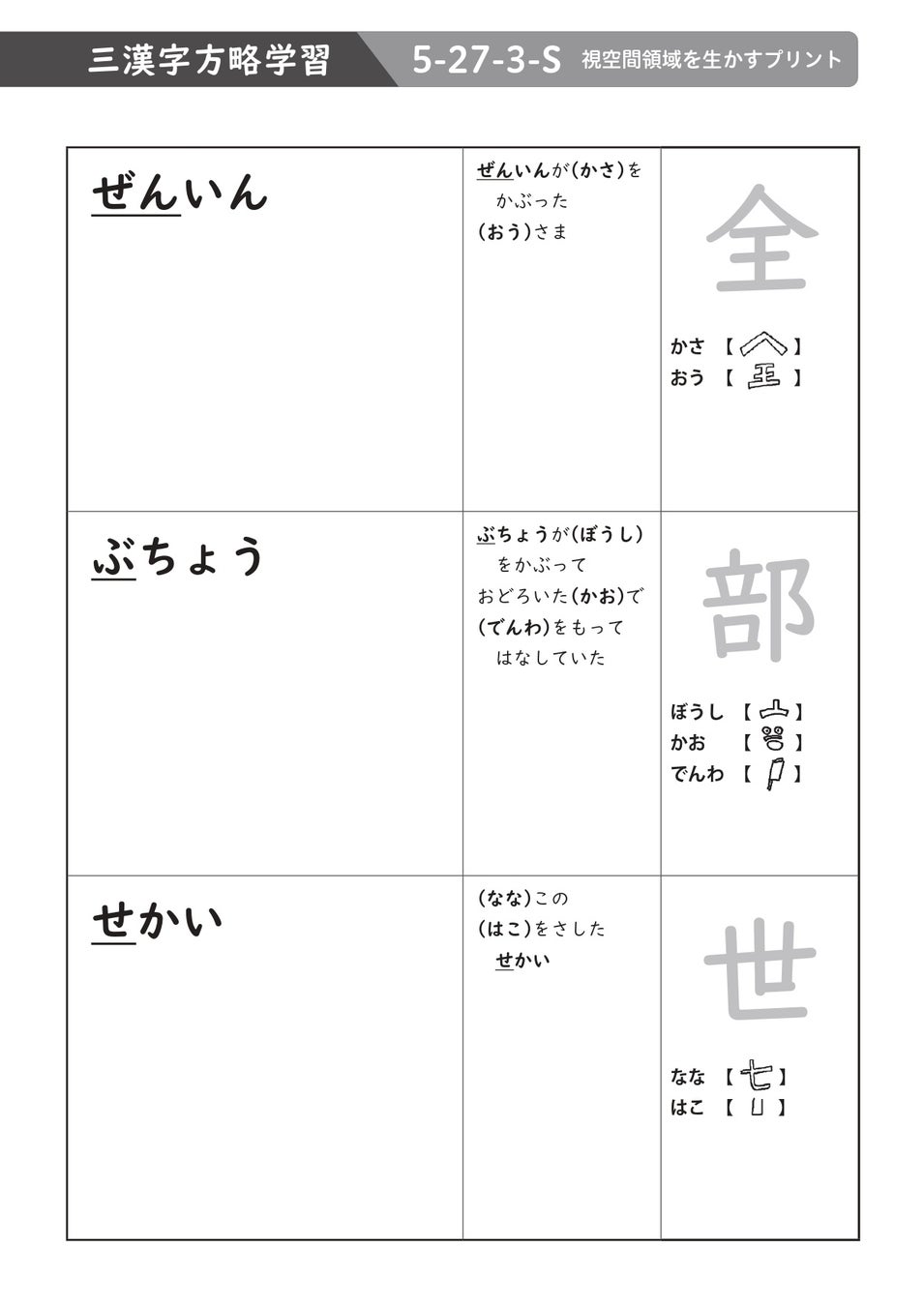 漢字を何回も読んでも読み方を忘れる、繰り返し書くだけでは漢字が書けるようにならないなど、漢字の読み書きや語彙が身につきにくいお子さんを、ワーキングメモリのタイプ別に支援できる漢字プリント集です。