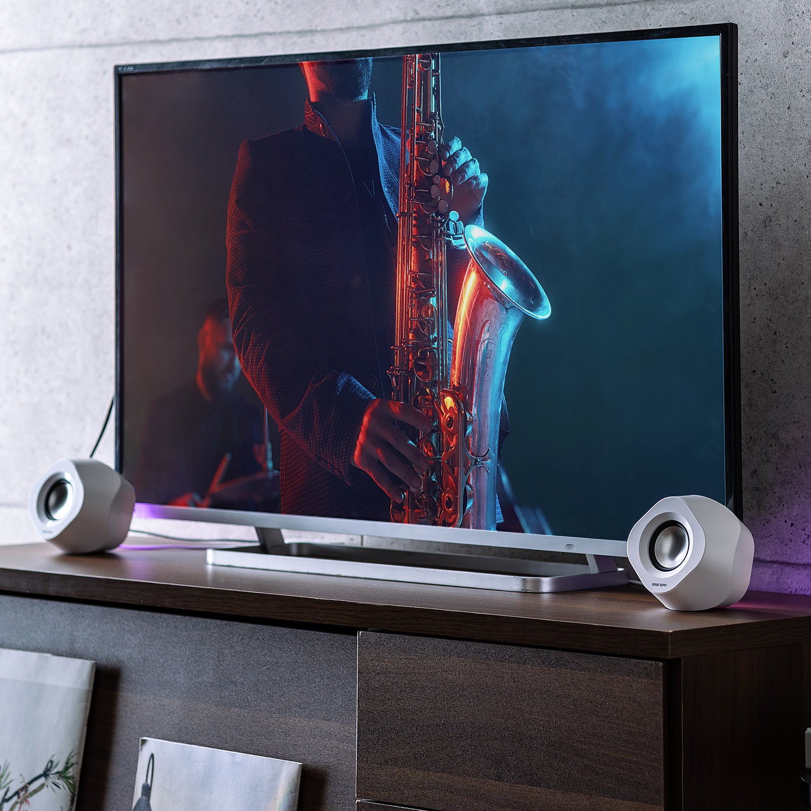 ざまざまな機器と接続できるコンパクトな丸形PCスピーカーを発売