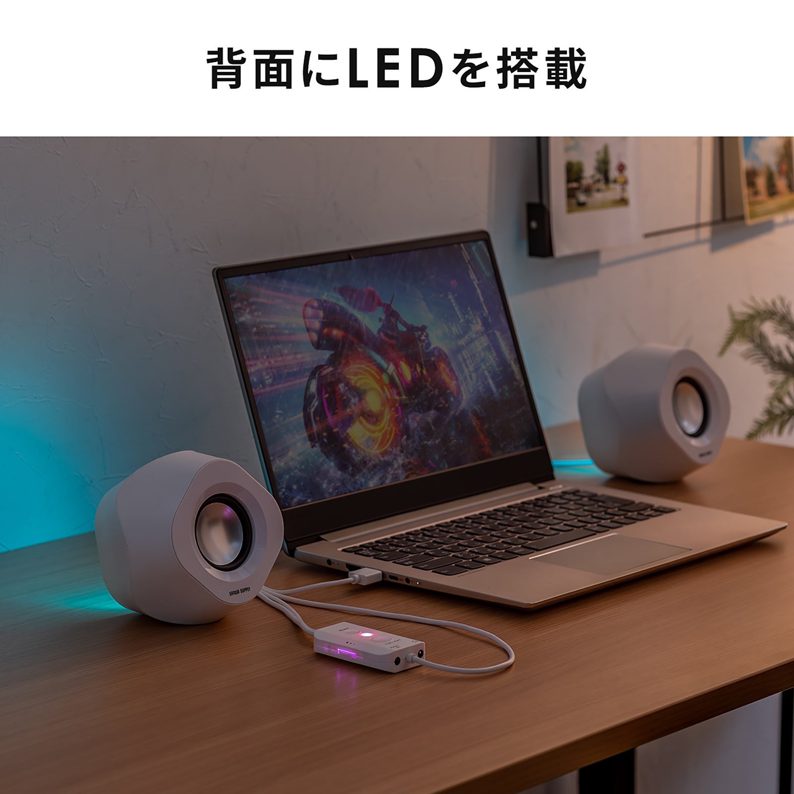 また、背面にはLEDも搭載しており、デスク周りの雰囲気を変えられます。