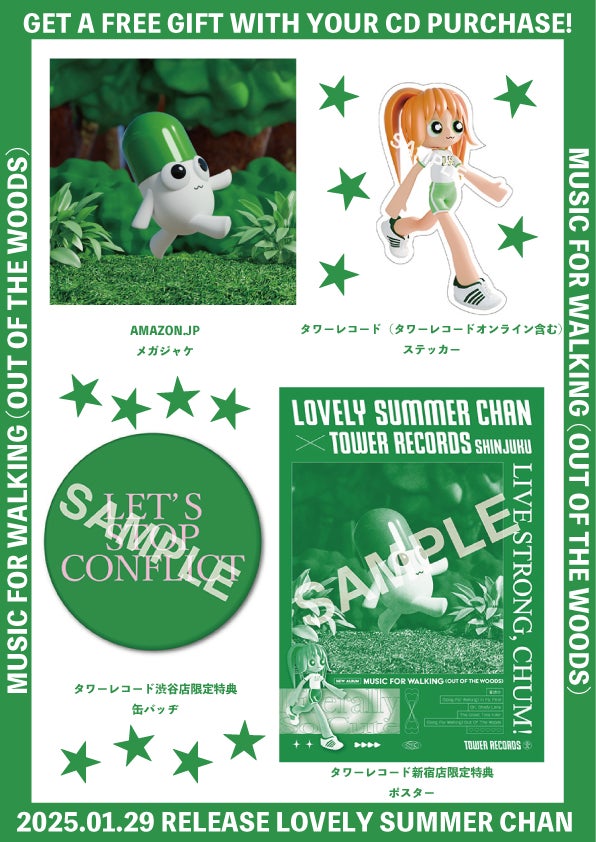 2025年1月29日(水)発売のラブリーサマーちゃん『Music For Walking (Out Of The Woods)』(COCP-42438)を下記対象店舗でご予約・ご購入の方に先着で下記特典をプレゼント!
