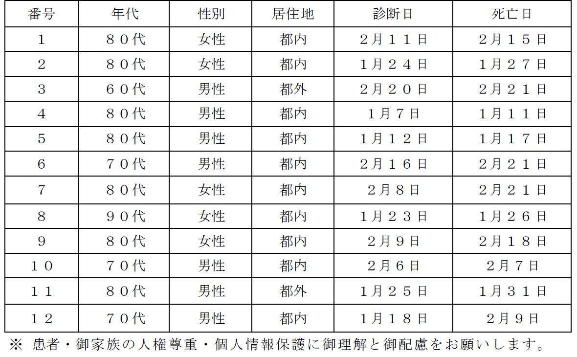 都内で新型コロナウイルスに感染した方が死亡されましたのでお知らせします。