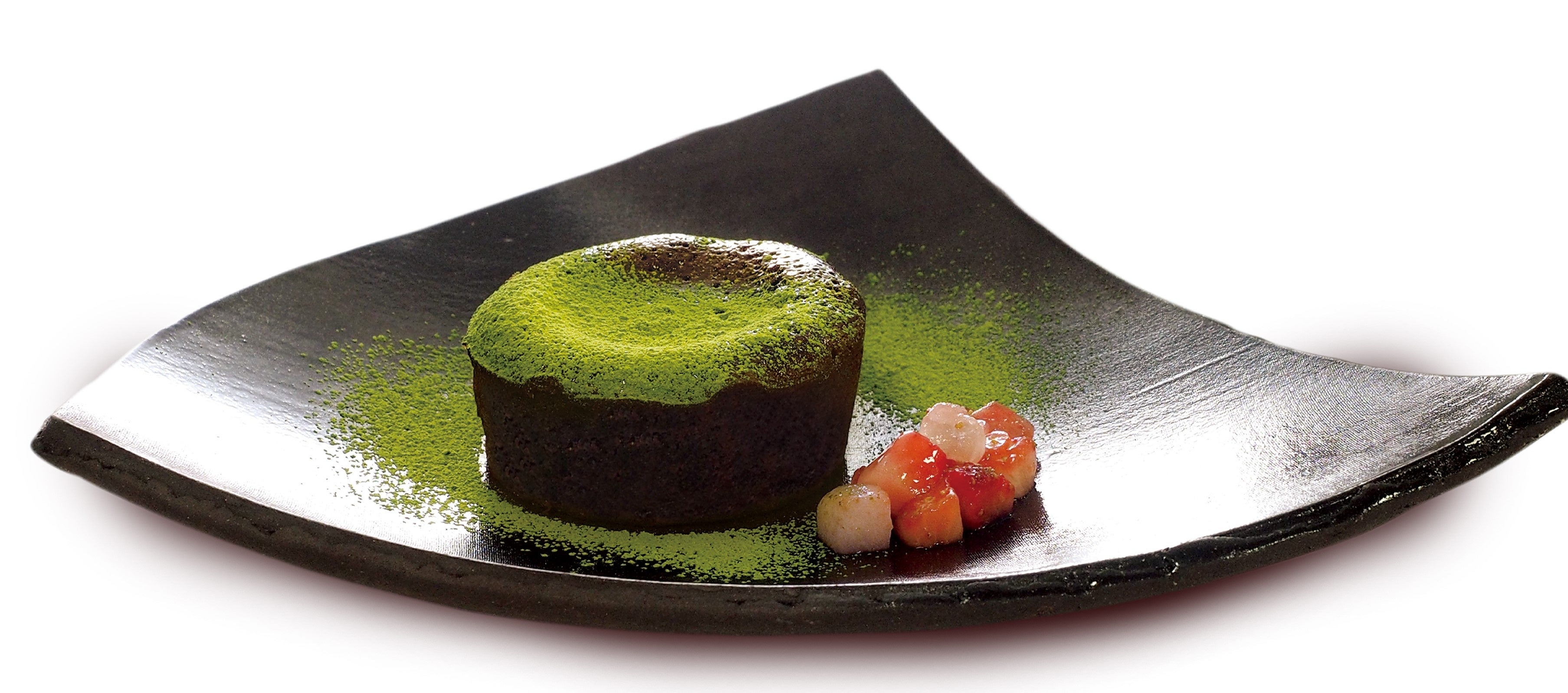 中から溶け出したほんのり温かく濃厚なチョコレートと抹茶の香りの調和が楽しめる大人スイーツ。
