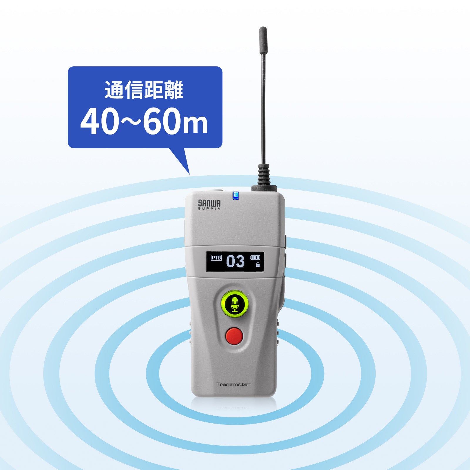 電波干渉の少ないUHFワイヤレスで安定した音声通信が可能です。(通信距離は約40~60m)