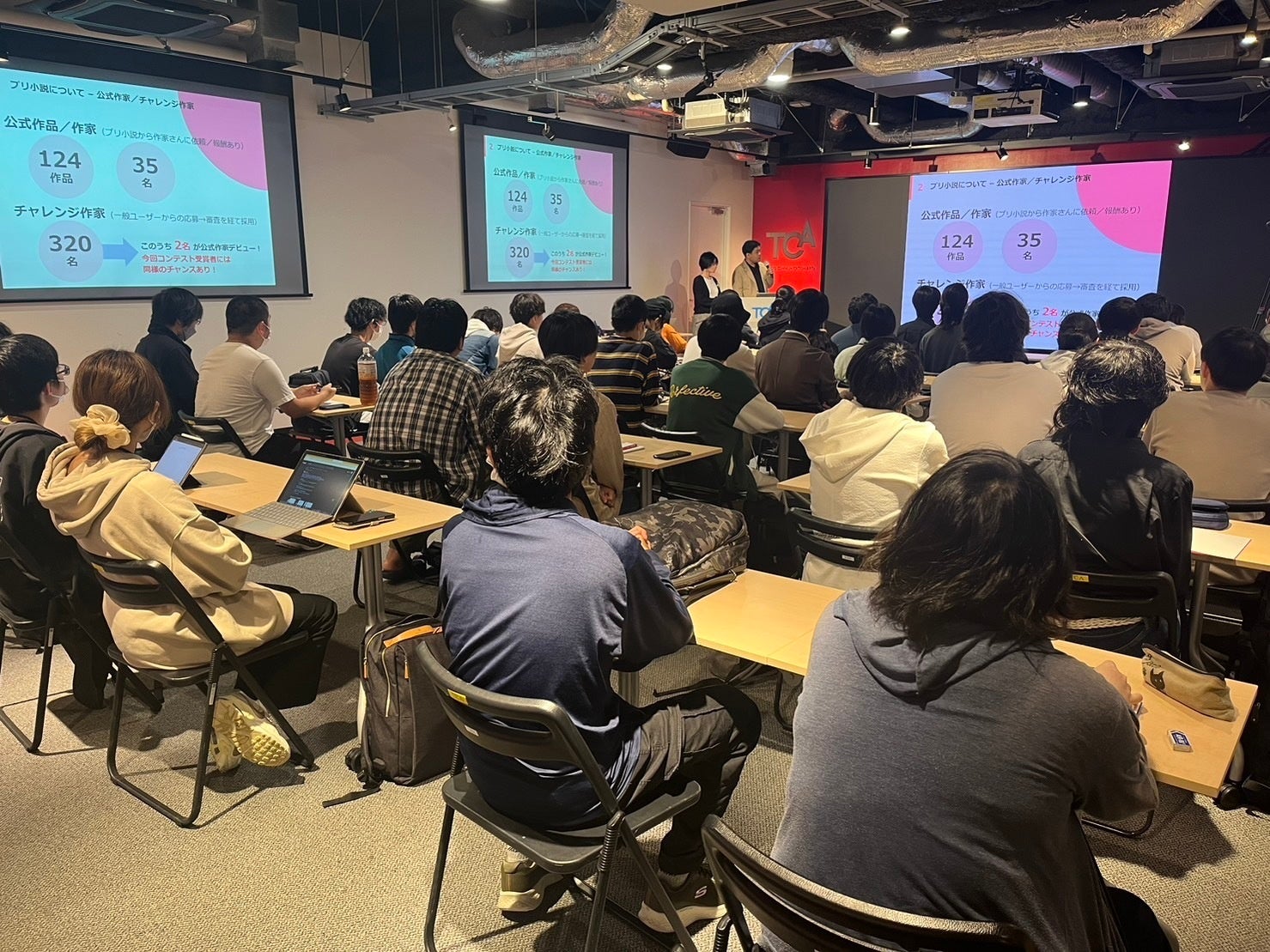 2023年10月4日(水)に、GMOメディアによる学生向けのオリエンテーションを行いました。「プリ小説 byGMO」のサービス紹介から、コンテストの概要までをサービス担当者から直接説明し、「プリ小説 byGMO」とコンテストの理解を深める場となりました。会場では学生からの質問もあり、サービス担当者は「熱量の高い学生が多く、たくさんの応募作品が楽しみ」と感じているようです。