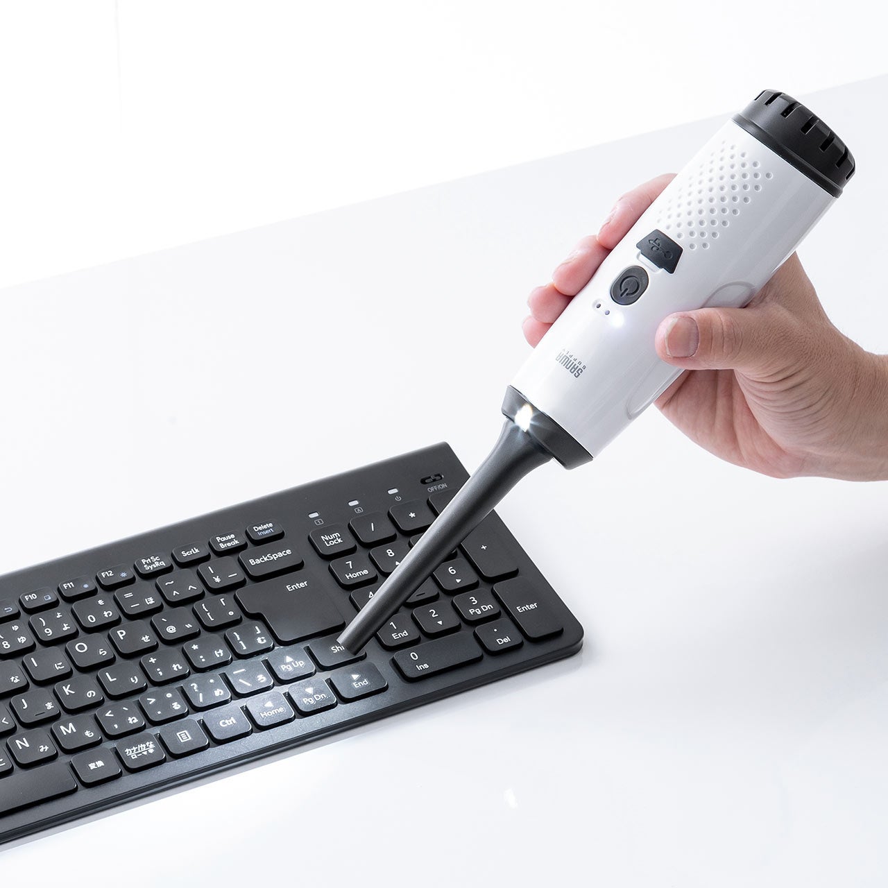 本製品は充電式で繰り返し使える強力な電動エアダスターです。キーボードやパソコン内部の掃除はもちろん、洗車後の細かい水滴飛ばしやクリーナーのフィルター掃除にも便利です。
