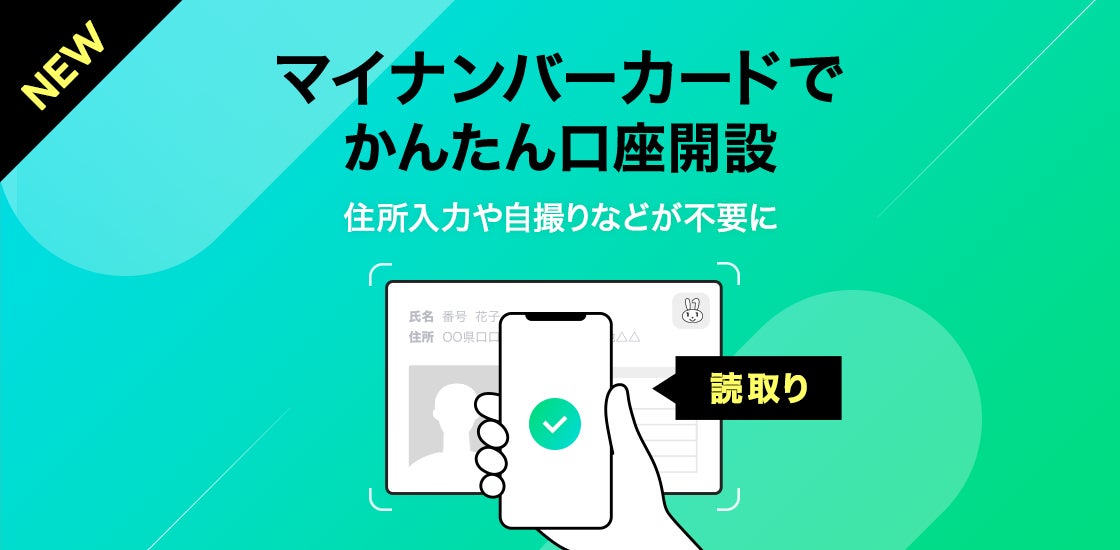 以下:LINE Pay社)が提供する「LINE Pay 公的個人認証サービス」を導入し、マイナンバーカードを読み込むことでリアルタイムで本人確認手続き・認証を行い、簡単に口座開設ができる「マイナンバーカード読取り」の提供を開始いたしましたので、お知らせいたします。