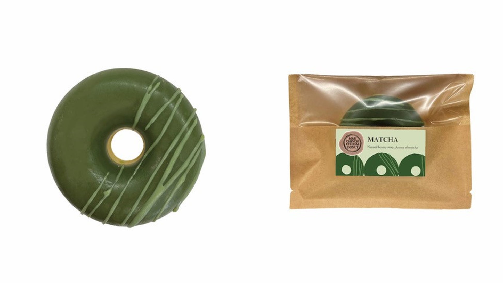 茶葉香る抹茶チョコレートにミルク抹茶ソースをかけた和風で大人なドーナツをデザイン。保湿成分として、無農薬栽培されたチャ葉を配合。