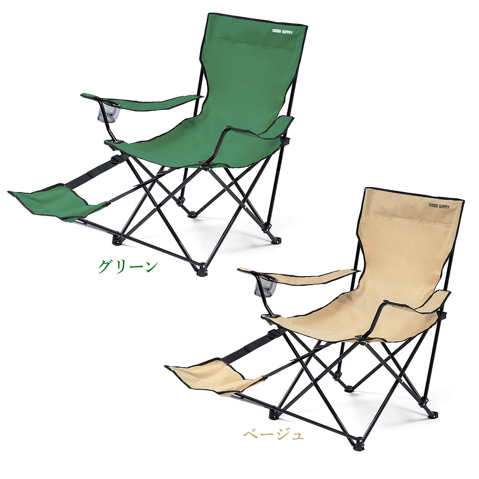 折りたたみチェア キャンピングオフィスチェア ワーケーションチェア 折りたたみ オットマン付き 収納袋付き アウトドアチェア コンパクト収納 カップホルダー付き ベージュ グリーン