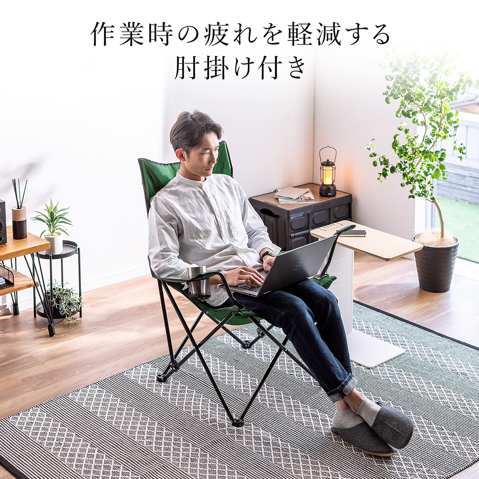 折りたたみチェア キャンピングオフィスチェア ワーケーションチェア 折りたたみ 収納袋付き アウトドアチェア コンパクト収納 カップホルダー付き ベージュ グリーン