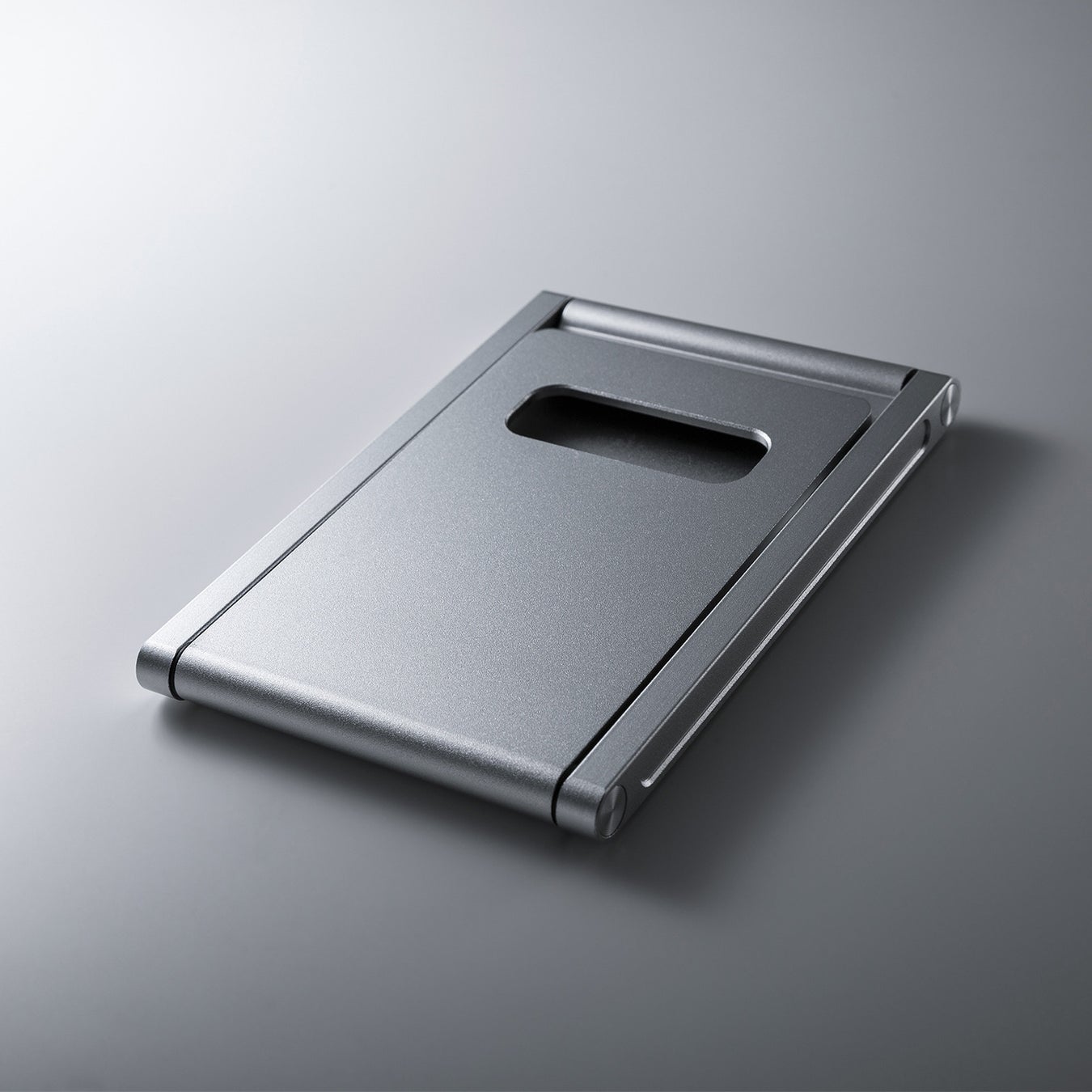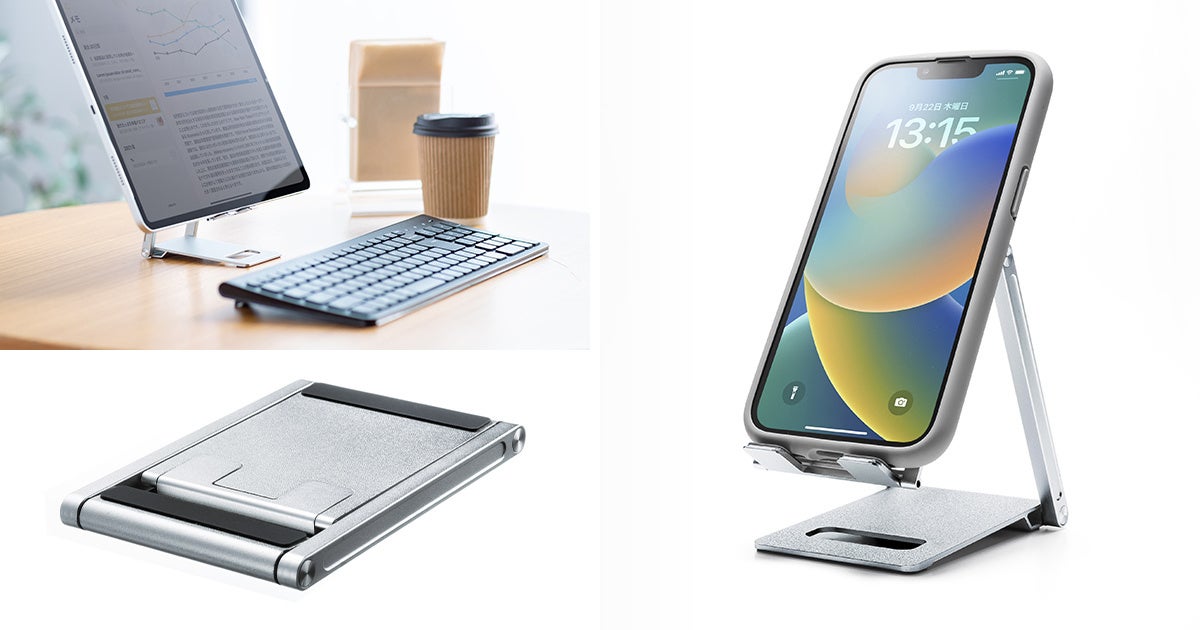 超薄型・フラットに折りたたみできるアルミ製モバイルスタンドを発売