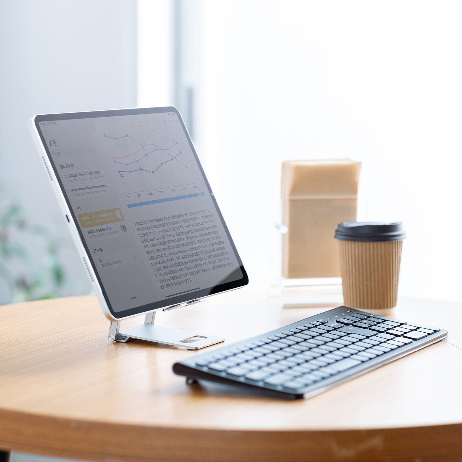 品名:タブレット・スマートフォン用薄型アルミスタンド(角度・高さ調整タイプ)