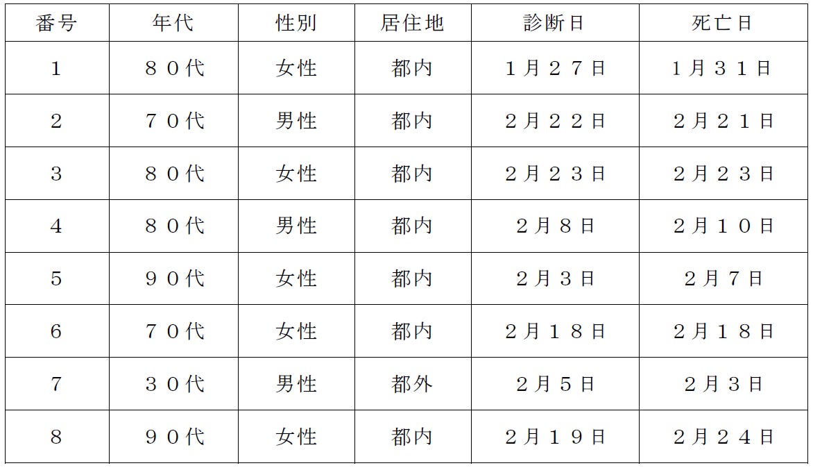 都内で新型コロナウイルスに感染した方が死亡されましたのでお知らせします。