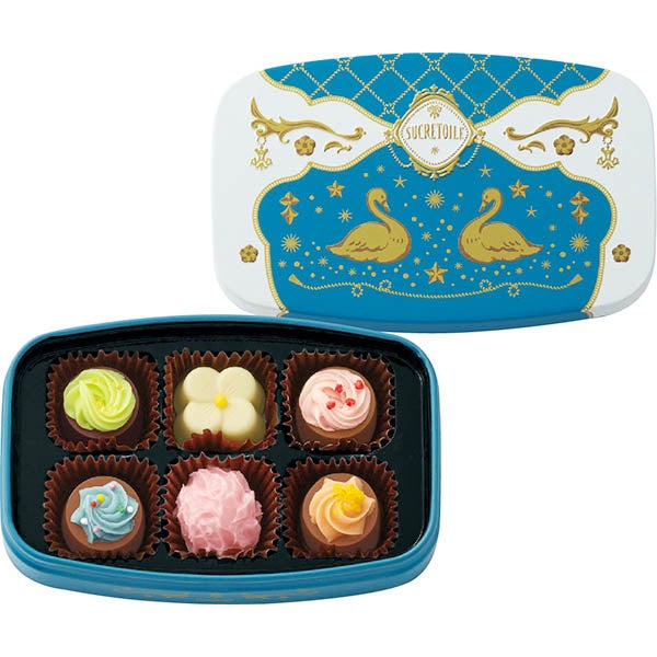 狼や白鳥など、夢の中の星空に浮かぶ動物をイメージした、オリエンタルなデザイン缶入りチョコレートです。