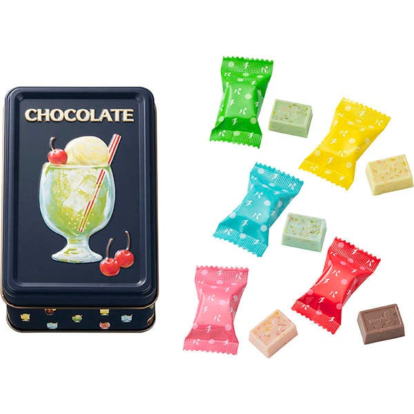 銭湯やパーラー、映画館など、ノスタルジックな街並みをテーマにしたレトロデザインが可愛い缶入り、箱入りのチョコレートです。