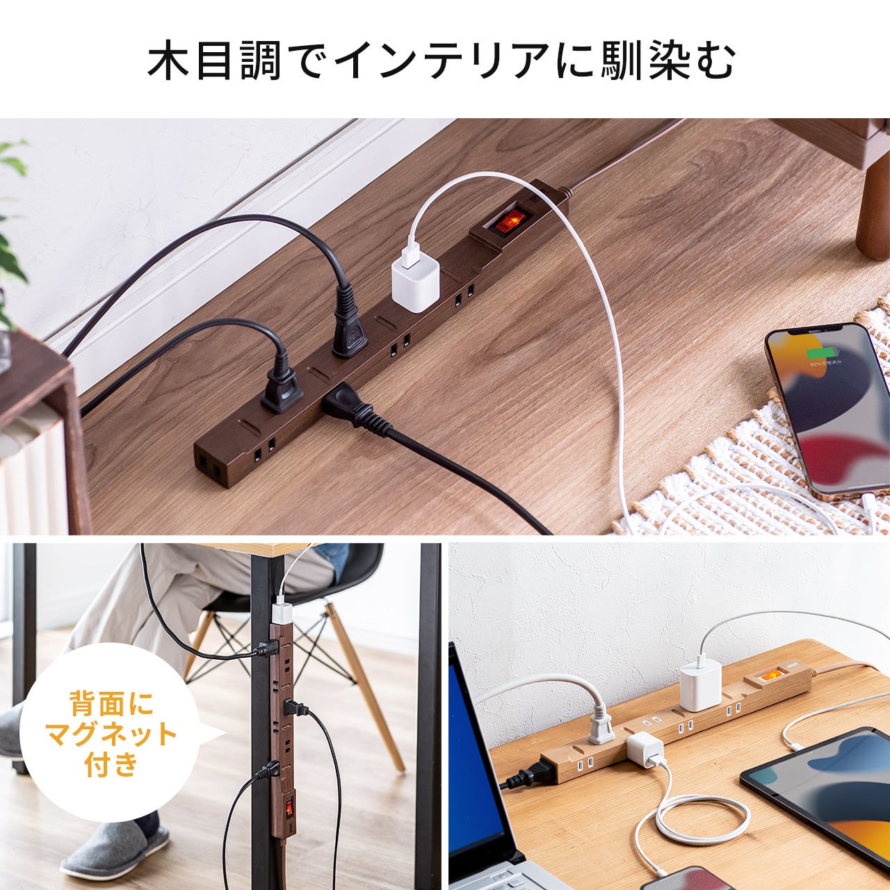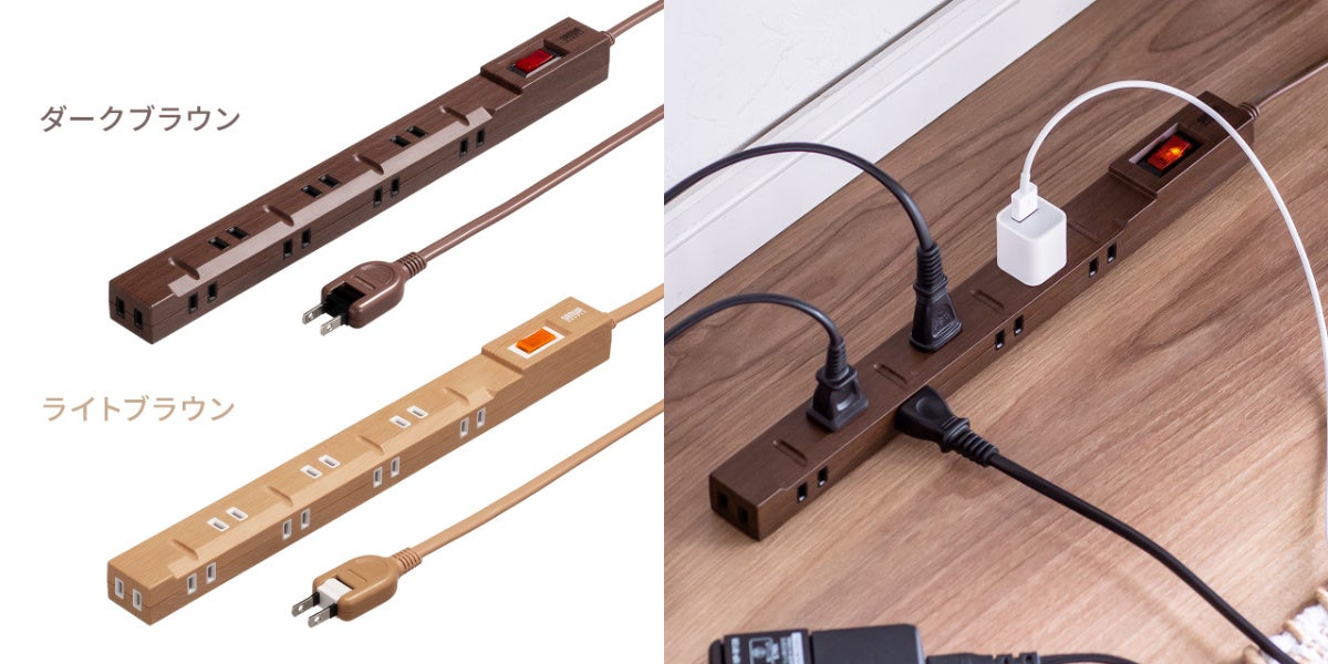 一括集中スイッチとブレーカーを内蔵した電源タップを木目調の2色展開で6月12日に発売