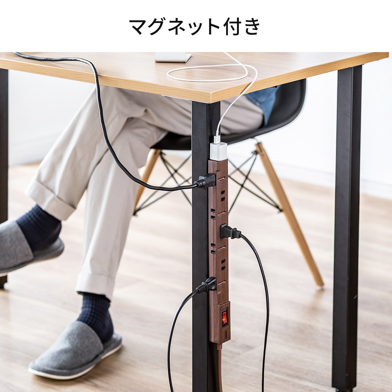 電源タップ 8個口 2m 一括集中スイッチ ブレーカー内蔵 ACアダプタ対応 マグネット ダークブラウン