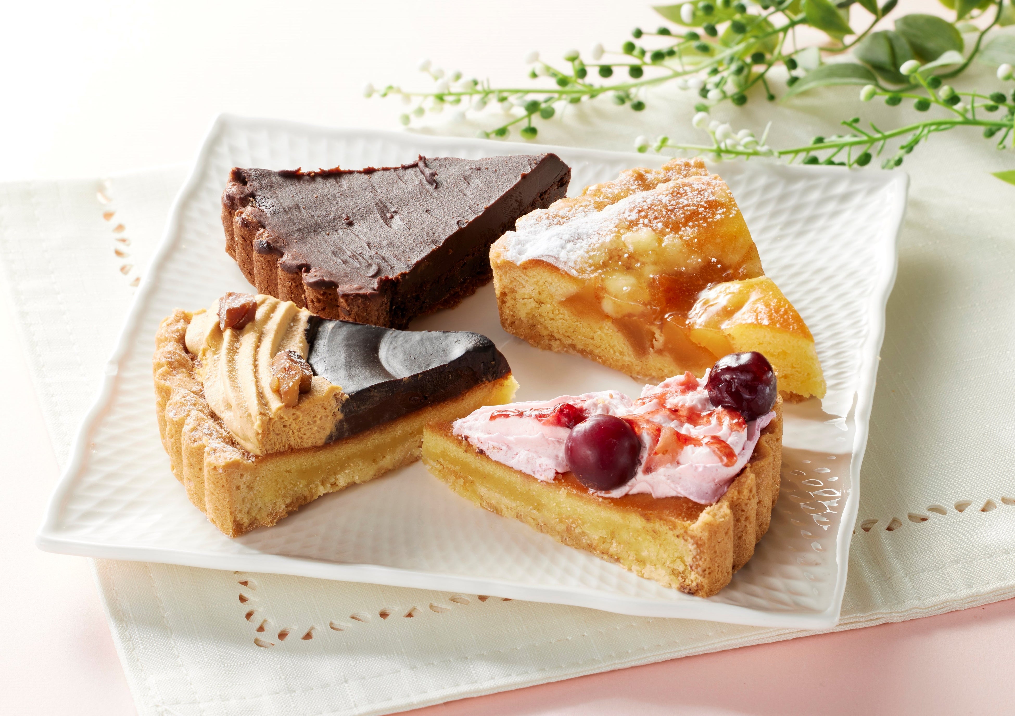 「ベルギー生チョコタルト」「生チョコモンブランタルト」「りんごのクランブルタルト」「ベリータルトを詰め合わせ」の4種のケーキを、バラエティあふれるアソートに仕立てています。