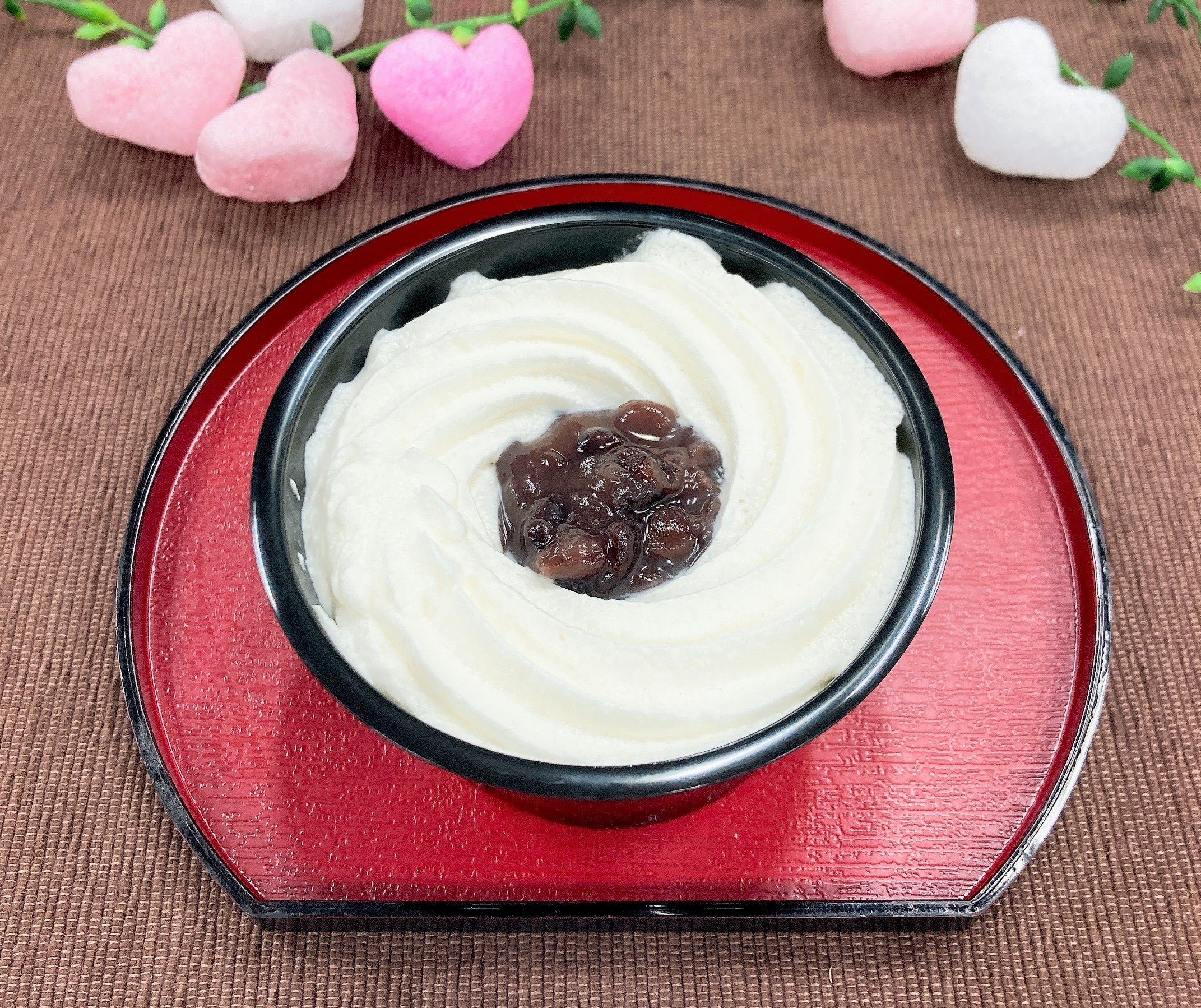 宇治抹茶のしっかりした苦味と、ぷるんとしたパンナコッタの食感を楽しめるスイーツです。トッピングには北海道生クリーム使用のホイップクリームと十勝産小豆のつぶあんをのせ、最後まで飽きずに食べられるよう仕立てています。