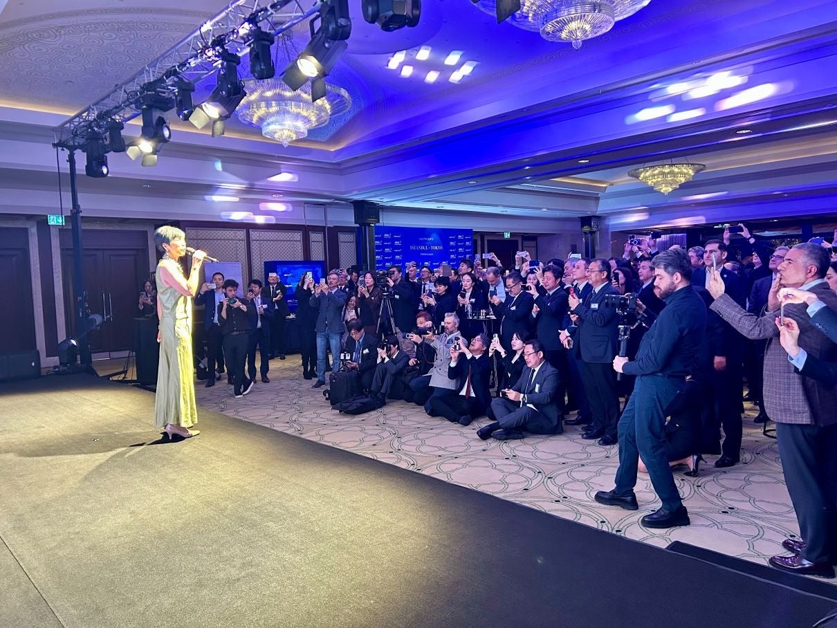 レセプション会場のフォーシーズンズ・ホテルには、日本とトルコの政府関係者、航空、旅行業界や日本の大使館関係者など220人が集まり、日本とトルコを結ぶヒット曲「飛んでイスタンブール」に聞き入った。