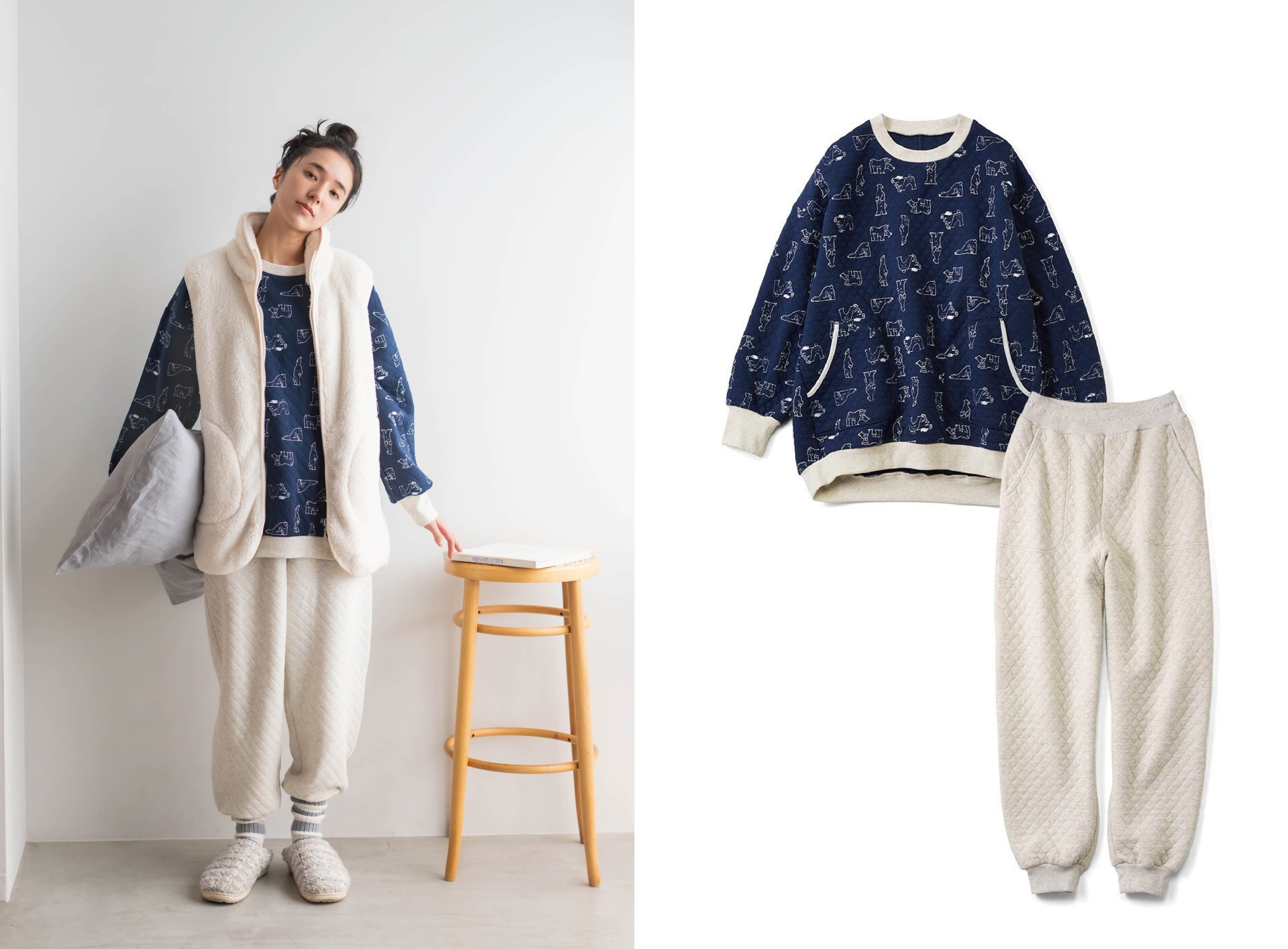 やわらかなコットン100%のキルティングのカットソー生地に、旭山動物園でおおらかに暮らすホッキョクグマの姿がプリントされたパジャマ。ホッキョクグマのデザインはイラストレーターのyamyamさん。やさしい着心地と落ち着きのあるイラストは、眠るときはもちろん、おうちでくつろぐときにもぴったりです。トップスはホッキョクグマをイメージしたコクーンシルエットになっていて、着ているだけでリラックスできそうです。