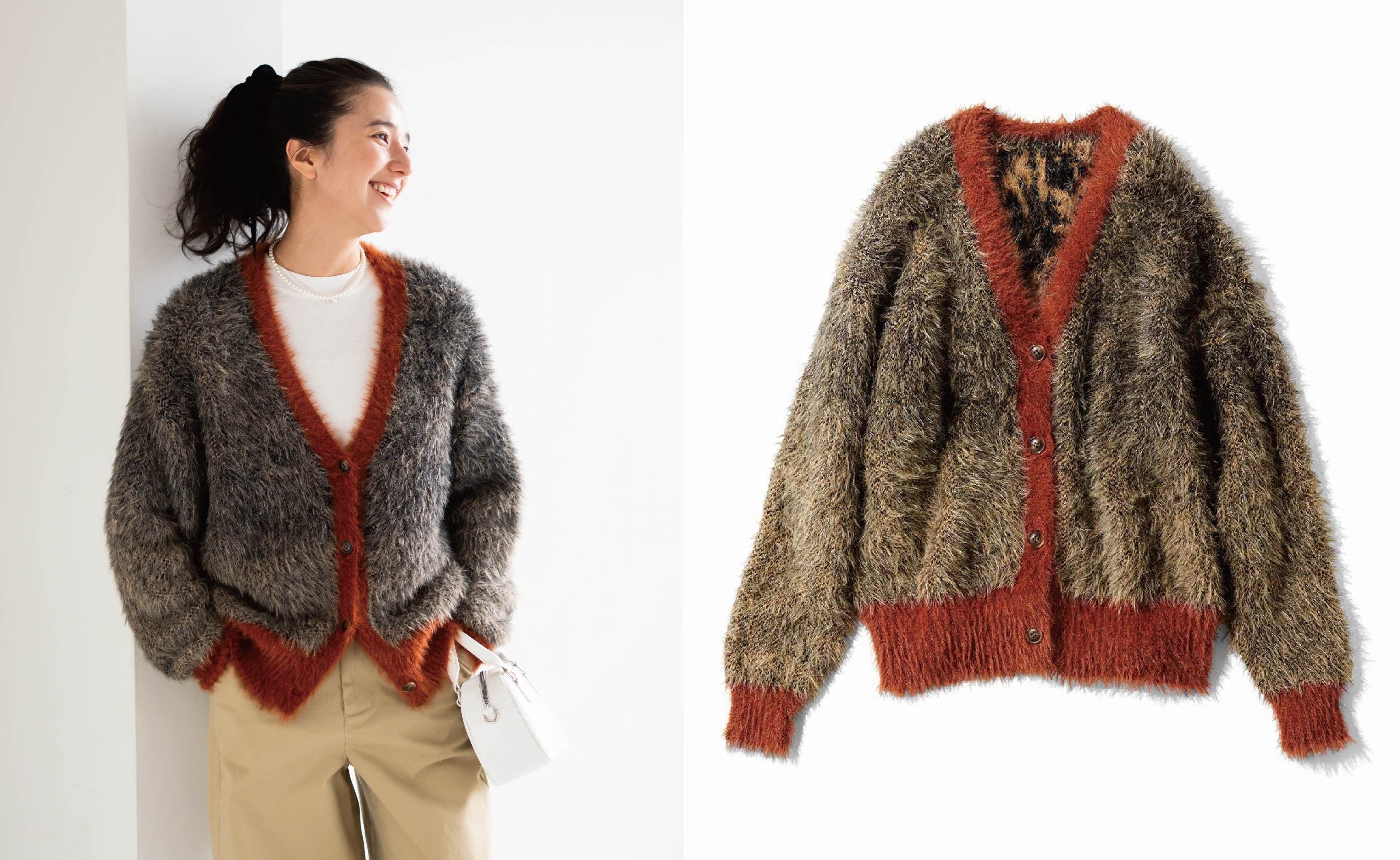 旭山動物園のダチョウのひなの、ふわふわした産毛をイメージしたニットカーディガン。しっかり肉厚で長い毛足が、見た目にも暖か。ゆったり軽やかな着心地で、アウター代わりにはおっても充分な存在感。冬コーデに遊び心ある個性を添えてくれます。