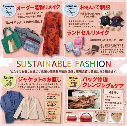 リフォームスタジオでは、衣料品のリフォーム(仕立て直し)やリペア(修理)を、創業当初から行ってきました。