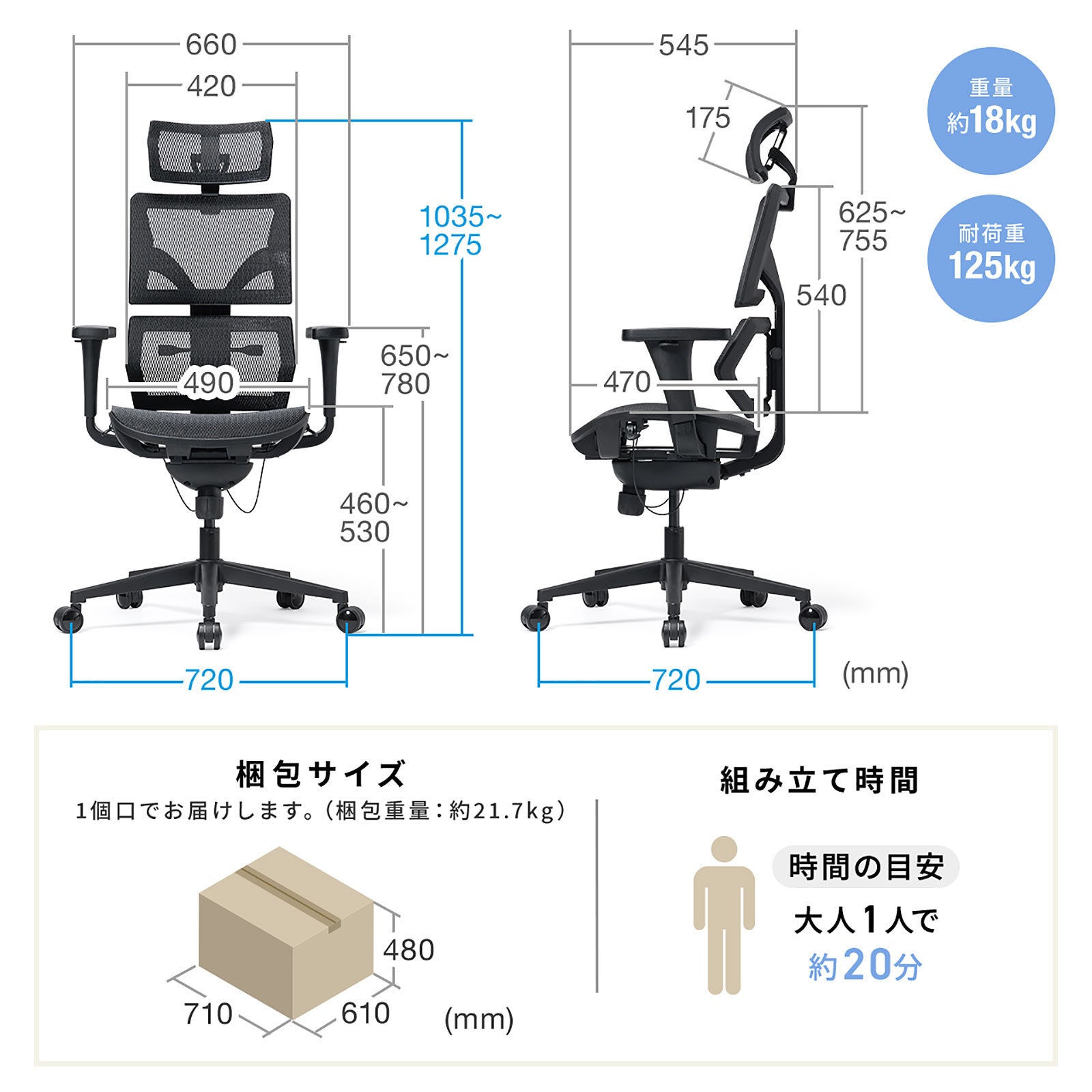 本製品のサイズは約W720×D720×H1035~1275mm、 重量は約18kgです。