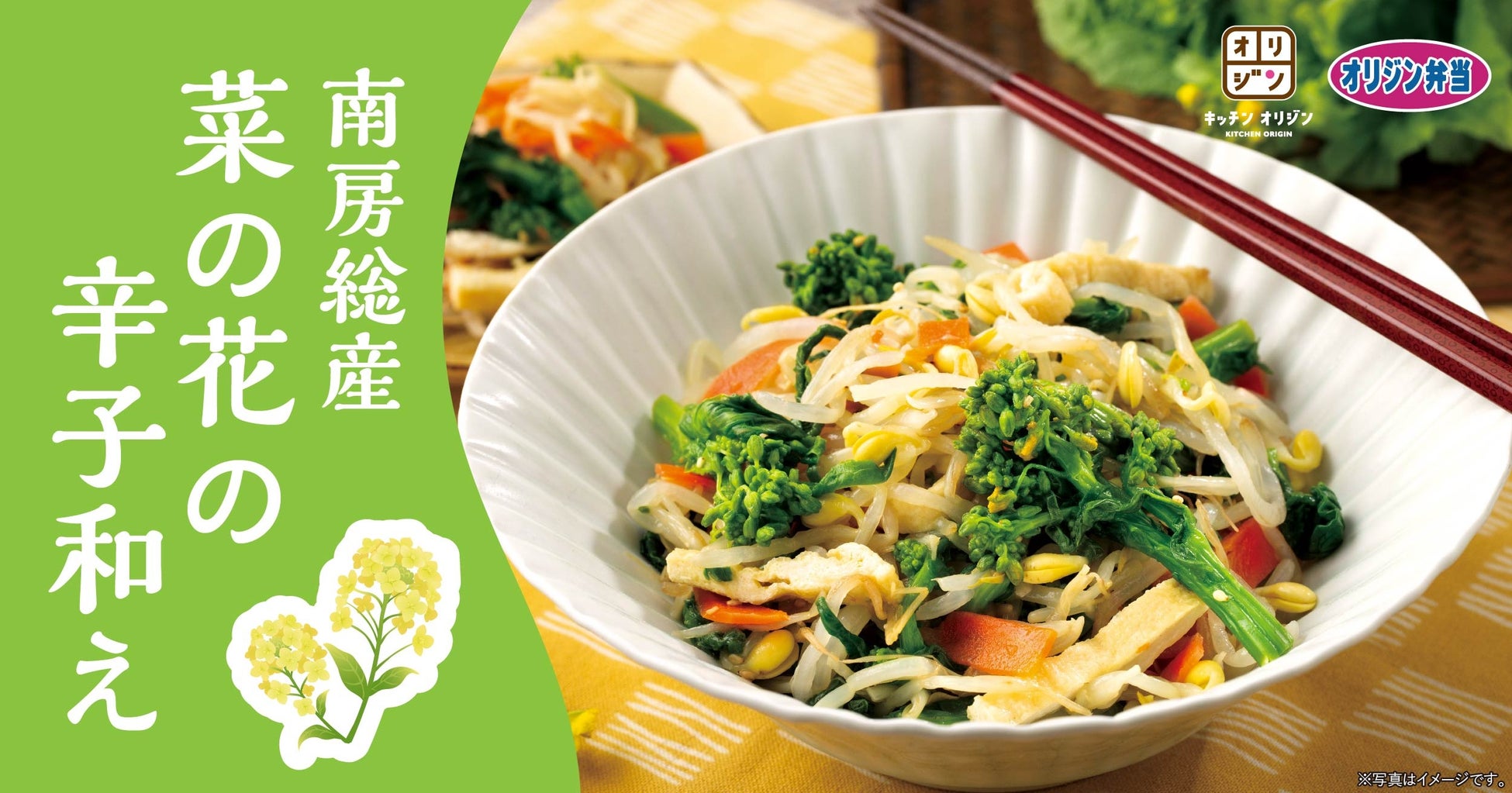 弁当・惣菜専門店「キッチンオリジン」「オリジン弁当」を展開しているイオングループのオリジン東秀株式会社(本社:東京都調布市/代表:沢村 弘也)は、2月2日(金)11時より、「南房総産 菜の花の辛子和え」を期間限定で販売いたします。
