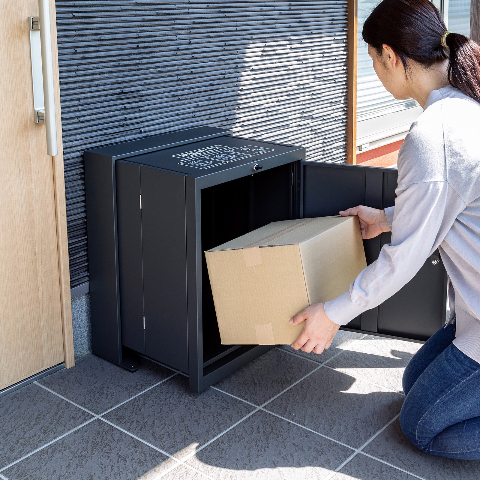 本製品を玄関の外(軒下など)に設置しておけば、宅配業者が荷物を投函してくれるので、不在時でも帰宅した際に荷物を受け取ることができます。