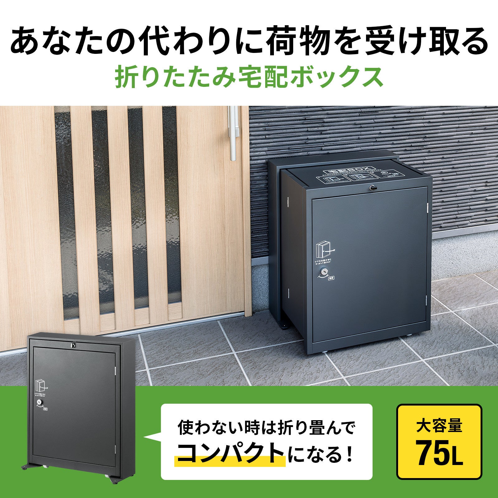 留守中も荷物を受け取りできる折りたたみ宅配ボックスを発売