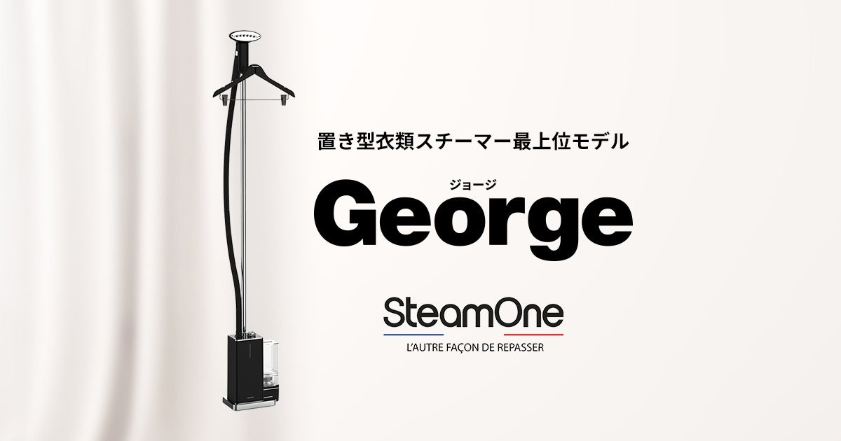 今回新たに日本で発売となるGeorgeはSteamOne置き型衣類スチーマーの最上位モデル*1です。様々な機能をバージョンアップし、国内衣類スチーマー史上最高クラス*1のスチーム量(約27g/分*2)と便利なセンサー機能で日々の衣類ケアをお手伝いいたします。