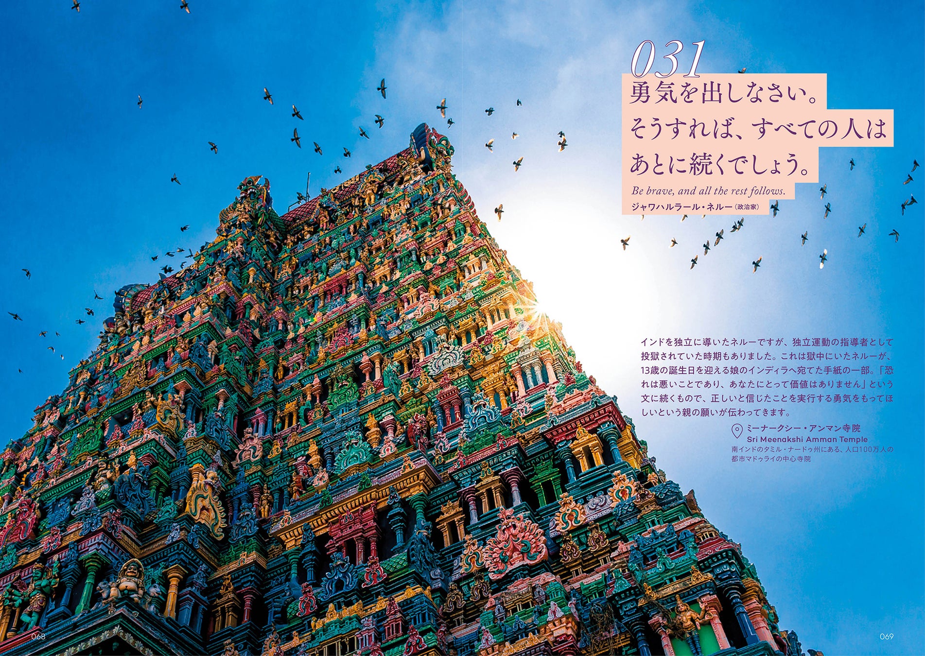 ヴェーダ(サンスクリット語で知恵の意)の精神が息づくインドの名言と、極彩色あふれる圧巻の絶景集。力強い言葉と写真から、癒やしとパワーをもらうための一冊です。5つのテーマに合わせた名言と絶景写真を「地球の歩き方」ならではのワンポイント解説とともに紹介します。